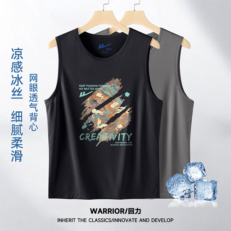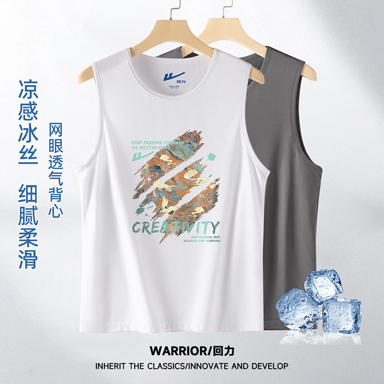 商品名称:【冰丝透气】美式复古背心男网眼轻薄透气弹力训练服男士健身坎肩 148371