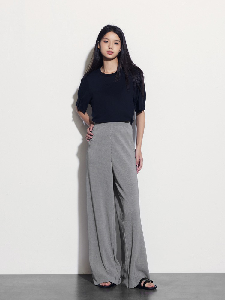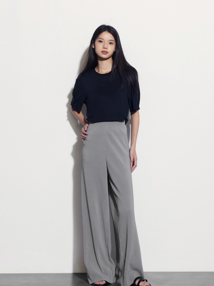 Gap女装春夏褶皱肌理感阔腿长裤百搭宽松休闲裤465847 029338