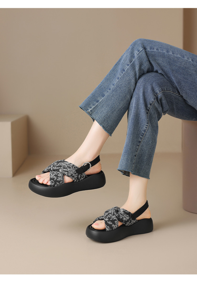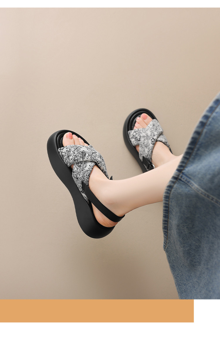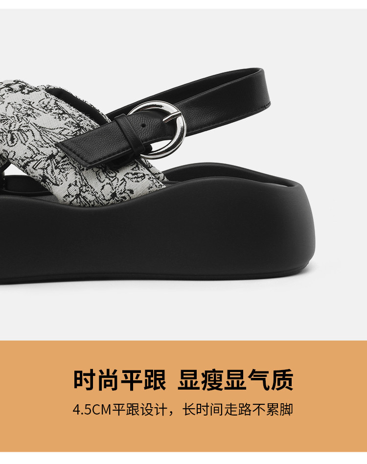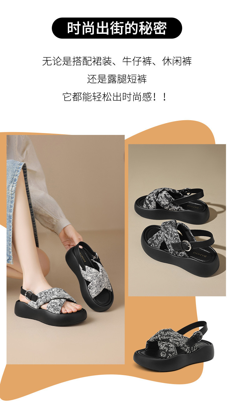 厚底沙滩女凉鞋夏季交叉一字带凉鞋百搭运动女凉鞋 094938
