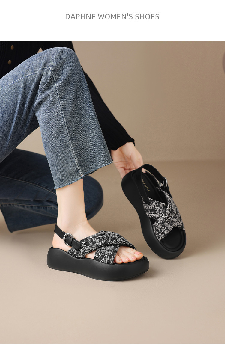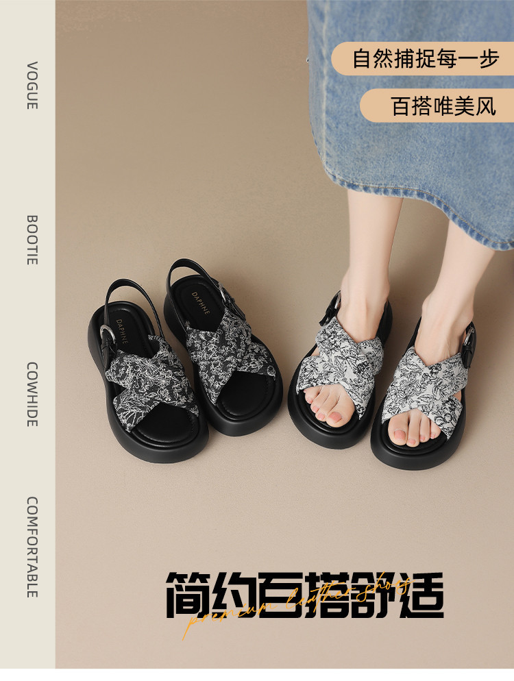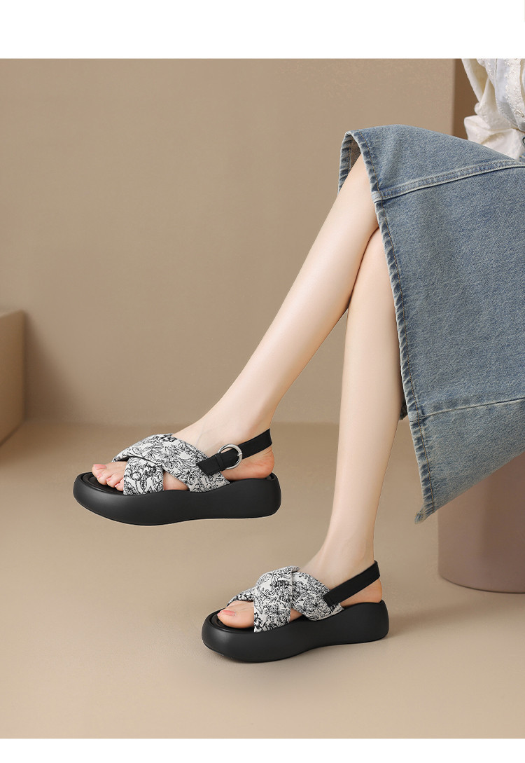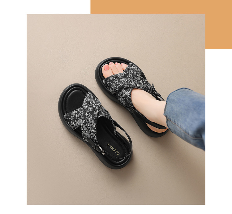 厚底沙滩女凉鞋夏季交叉一字带凉鞋百搭运动女凉鞋 094938