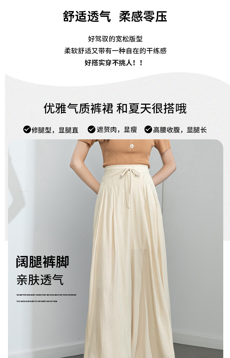 商品名称:女装秋季薄款裤子女宽松大裤腿阔腿裤慵懒感舒适褶皱裙裤 835871