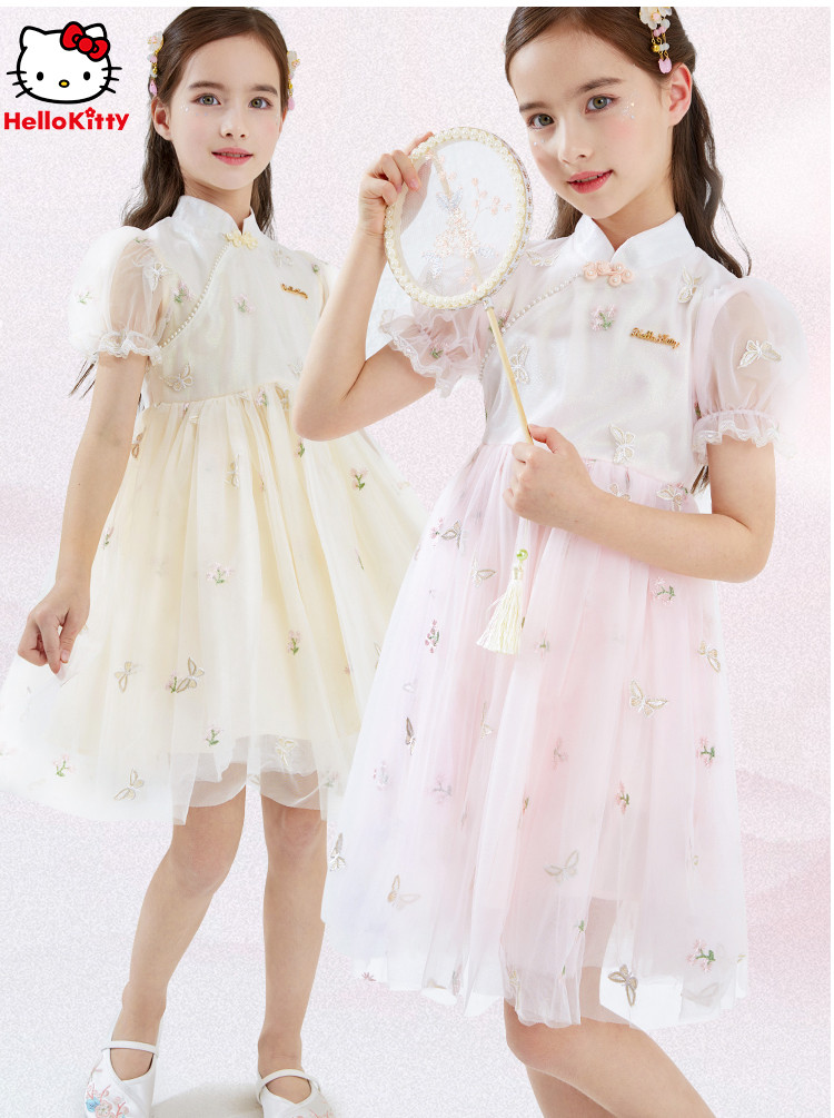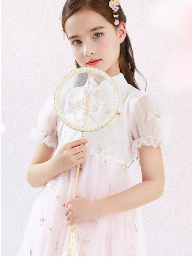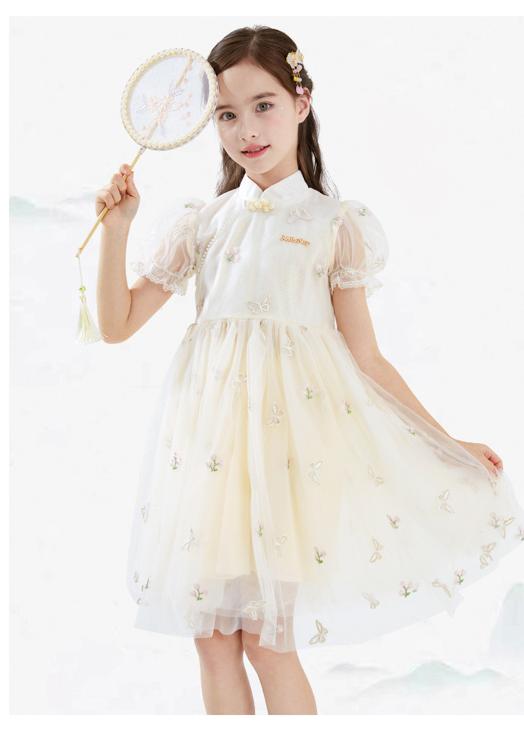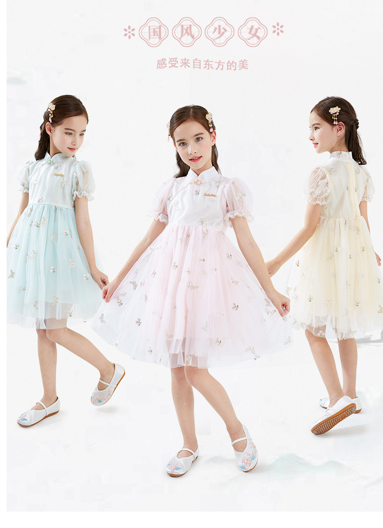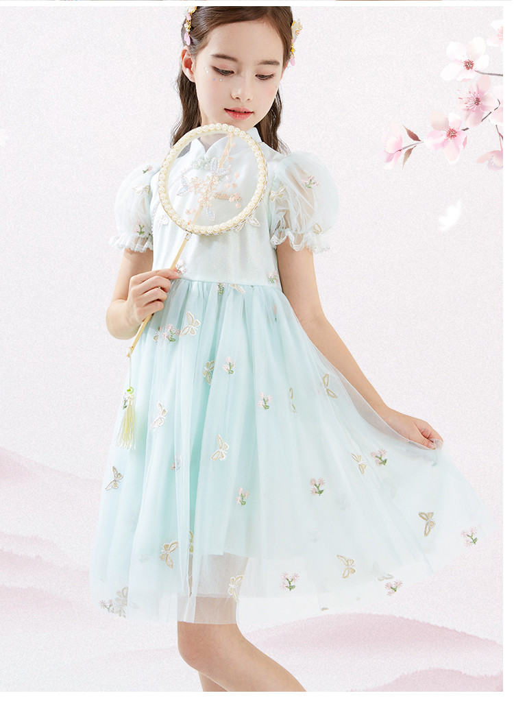 商品名称:女童连衣裙儿童夏装新款裙子旗袍裙中大童女孩国风网纱裙甜美 500865