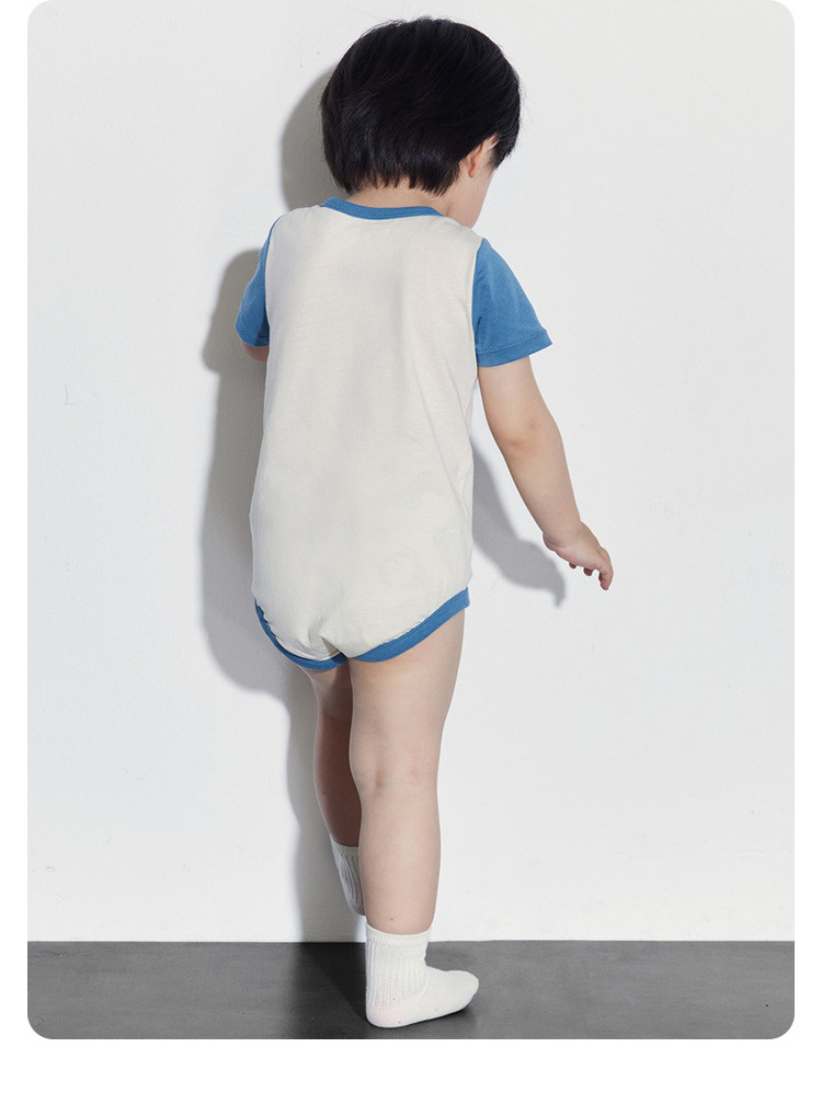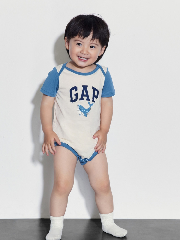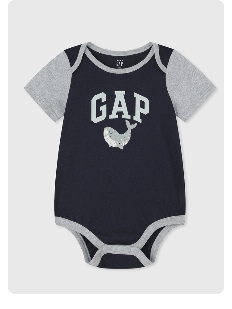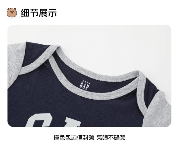 商品名称:Gap婴儿2024春秋季logo撞色纯棉短袖连体衣儿童装包屁衣505583 485338