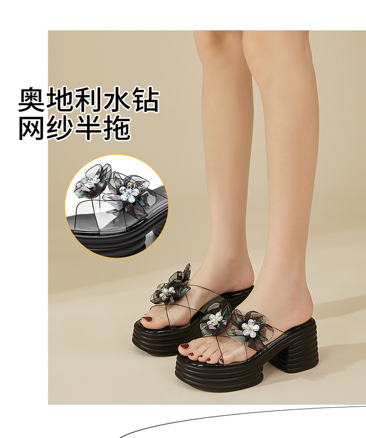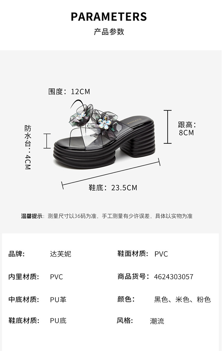 商品名称:【秒增8CM】爆款夏季凉拖鞋外穿小个子拖鞋透明水钻半拖一字拖 616023