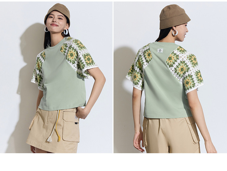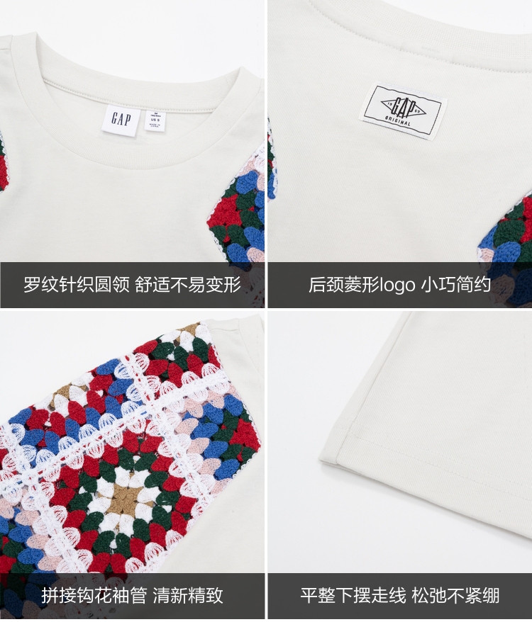 商品名称:Gap女装夏季洋气拼接钩花短袖T恤宽松时尚圆领上衣874528 225306