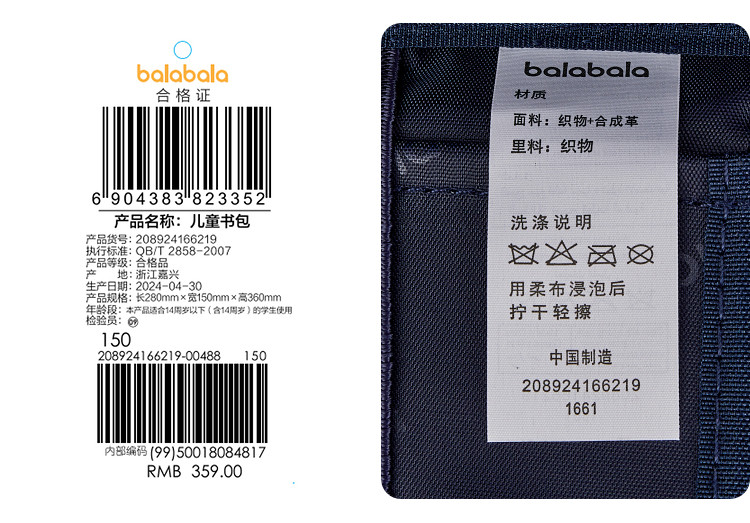 商品名称:开学季减重护脊儿童书包小学生男童女童1-3年级轻便背包双肩包 916741
