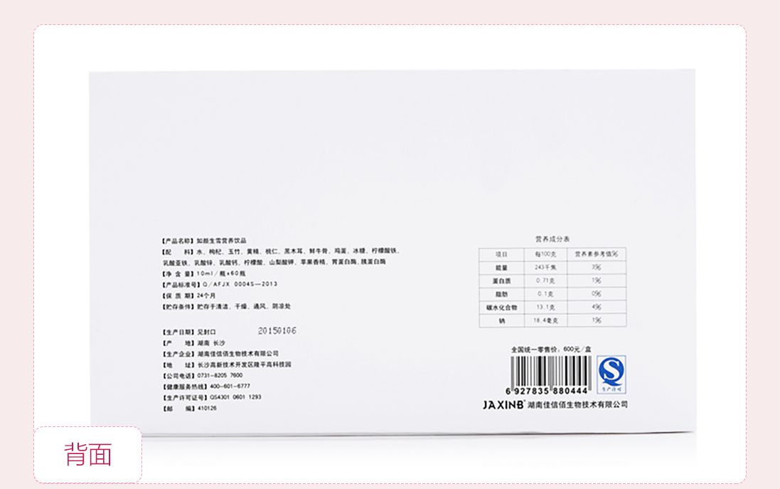 商品名称:佳信佰 钙铁锌营养饮品(如颜)