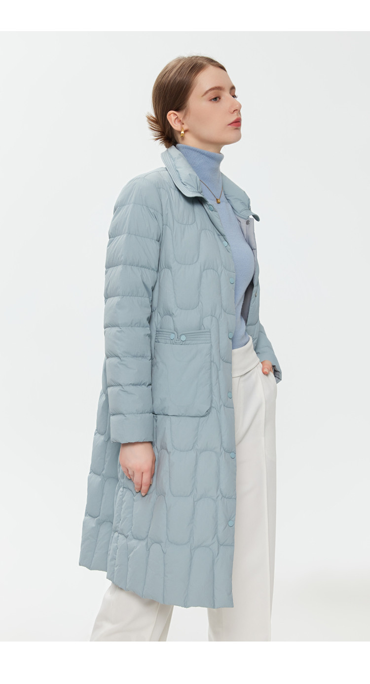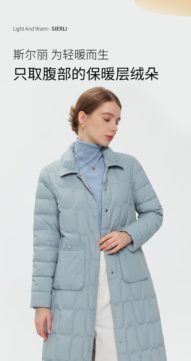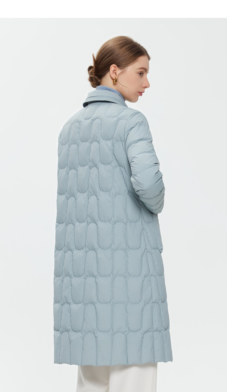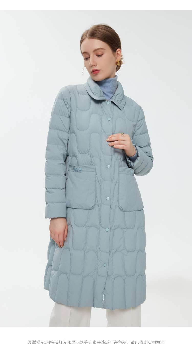 【鹅绒】莫兰迪色系轻薄蓄暖小翻领直筒中长羽绒服 439519