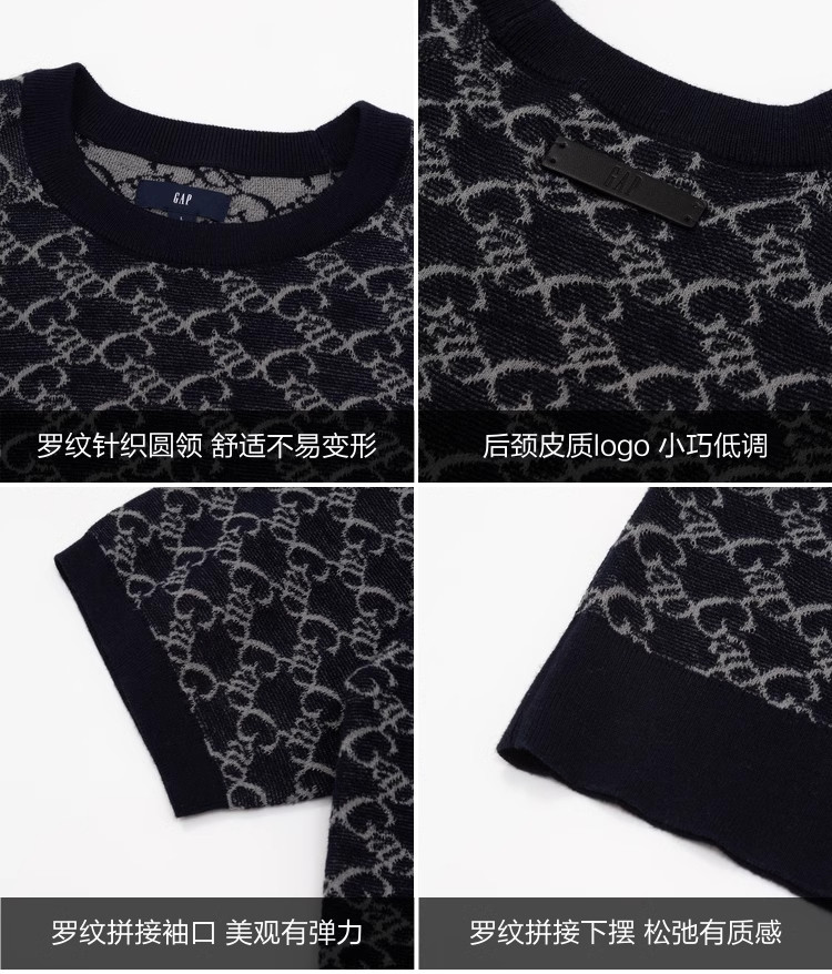 商品名称:Gap男装夏季满印老花logo圆领短袖质感时髦针织衫891719 539098