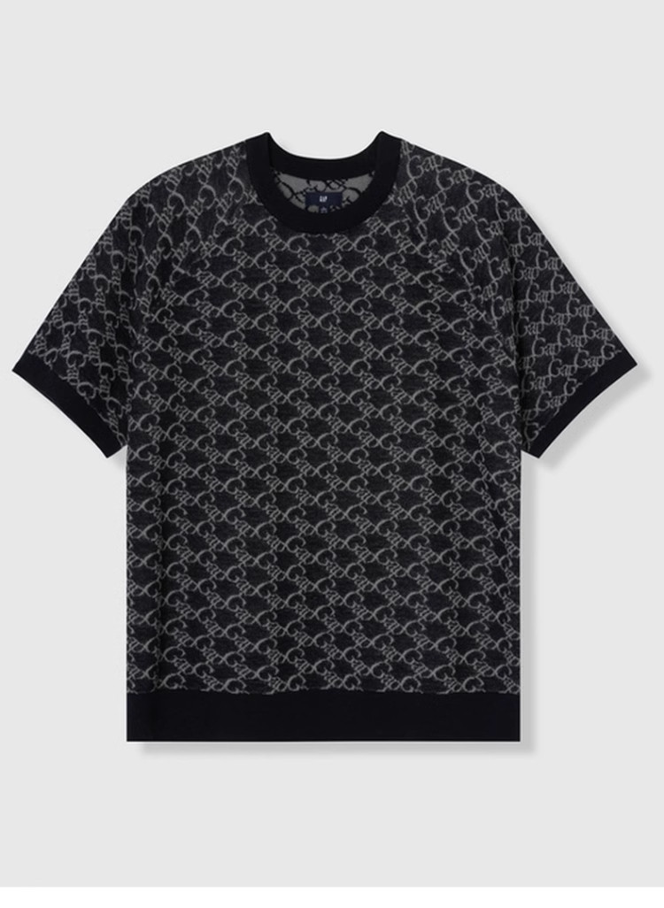 Gap男装夏季满印老花logo圆领短袖质感时髦针织衫891719 539098