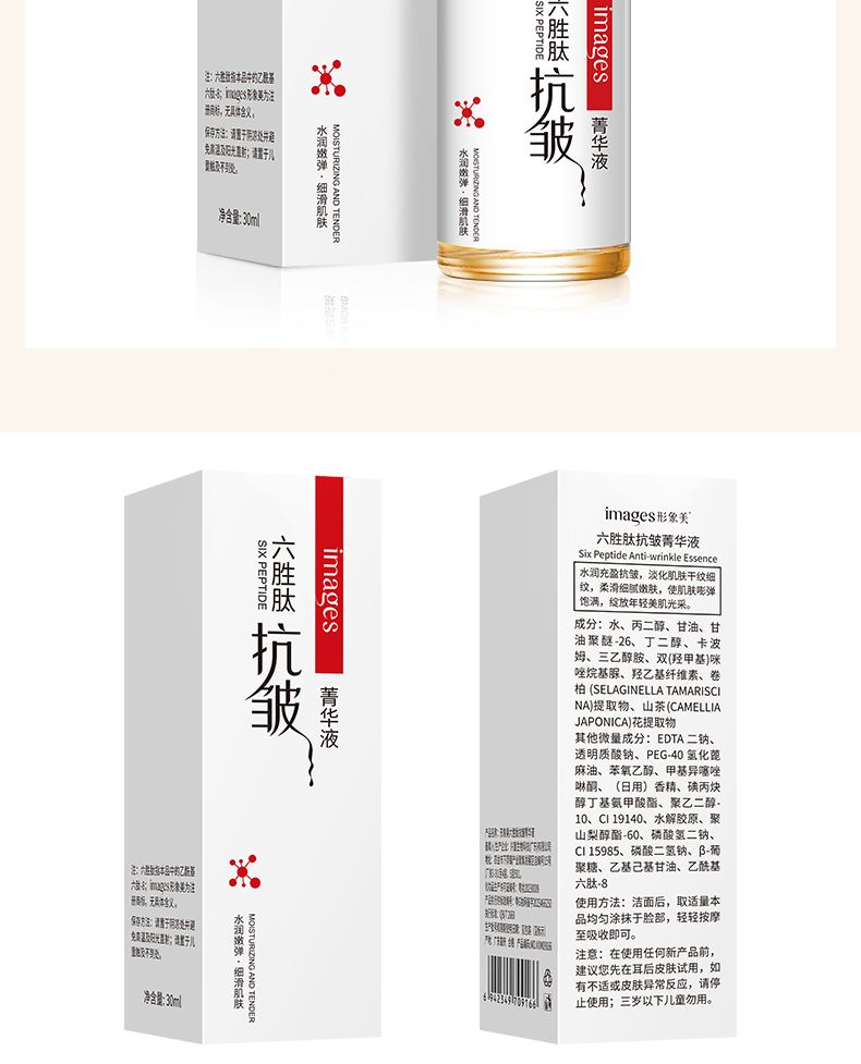 商品名称:六胜肽面膜补水面膜5片*2盒+六胜肽菁华液15ml*2瓶+六胜肽面霜50g*2盒