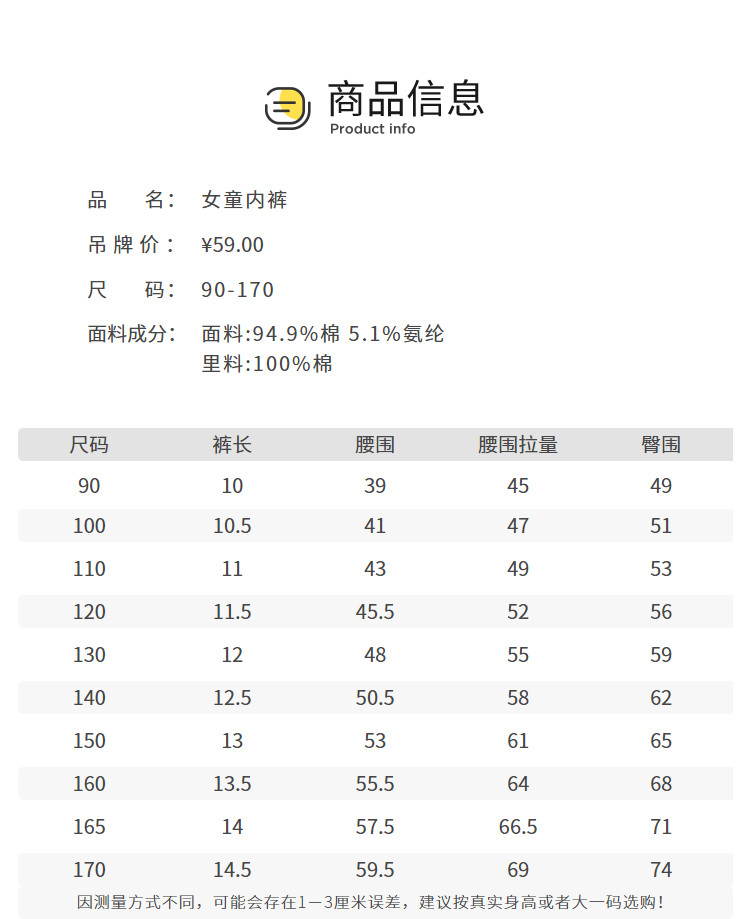 | 尺码 | 身高(cm) | 腰围(cm) | 裤长(cm) | 臀围(cm) | 适合年龄 | 号型 |