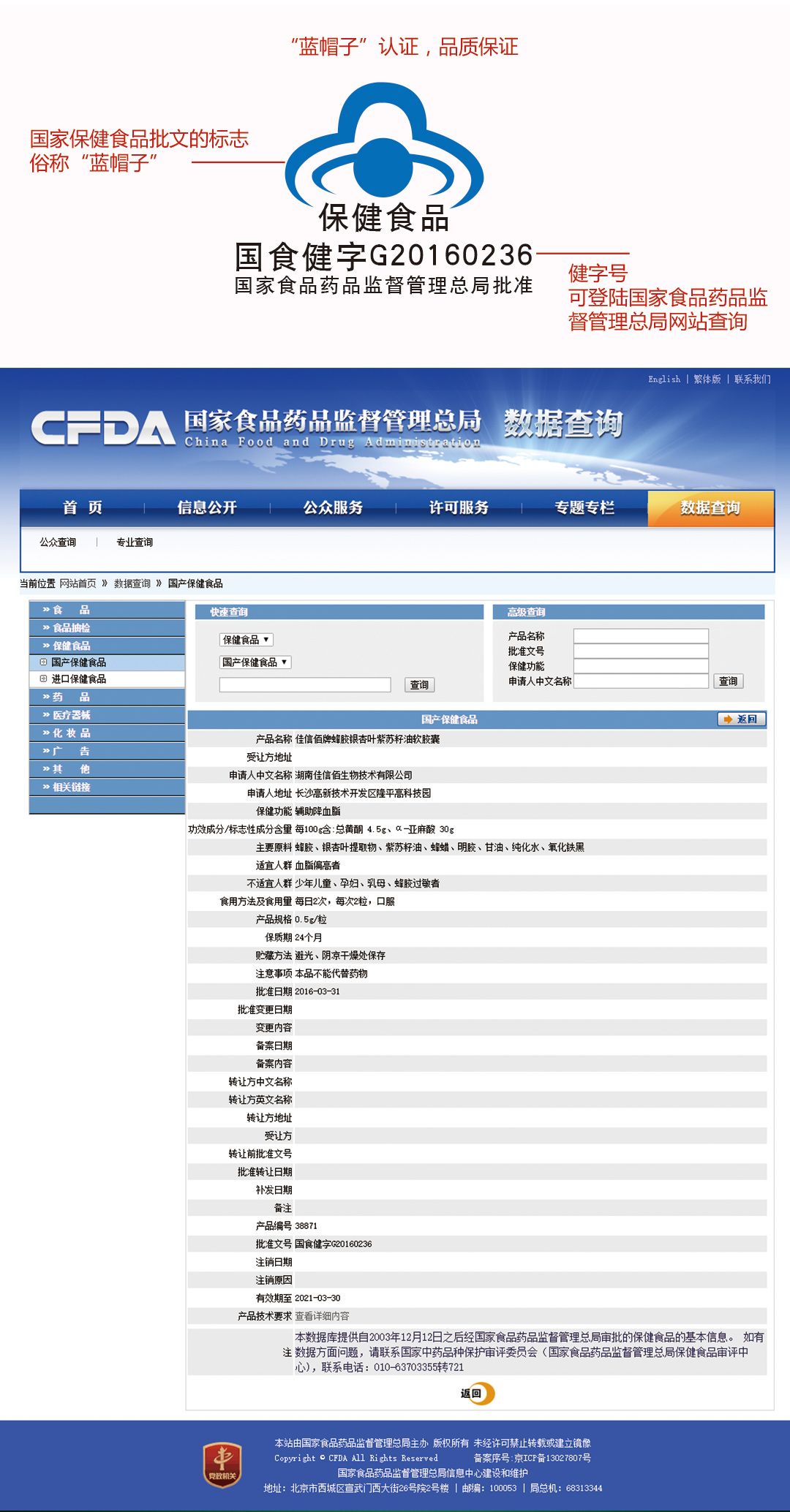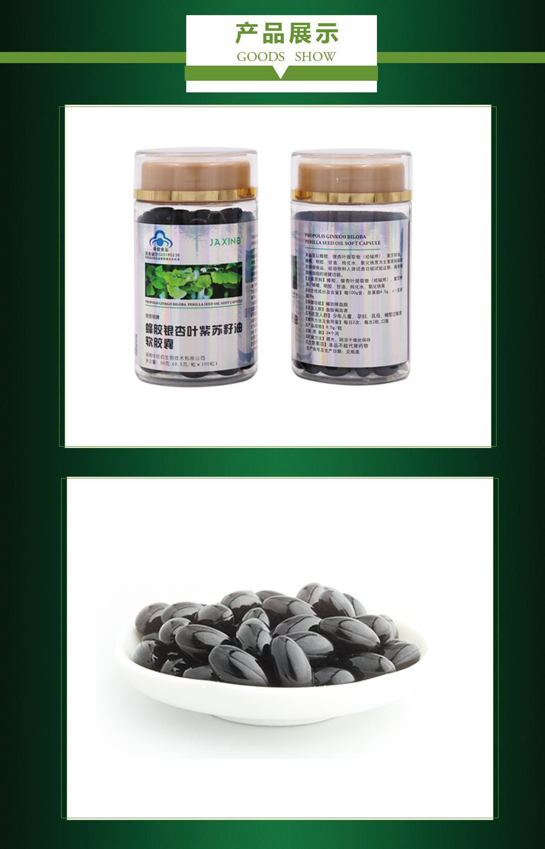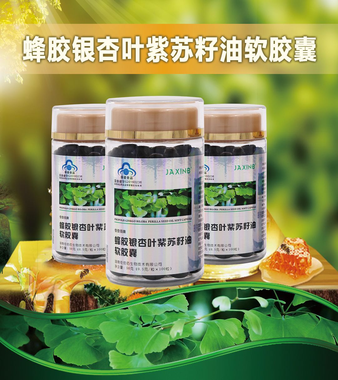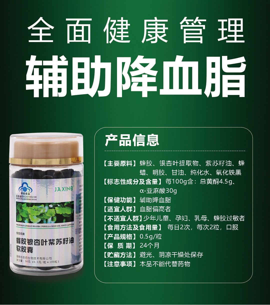 商品名称:佳信佰 蜂胶银杏叶紫苏籽油软胶囊 辅助降血脂