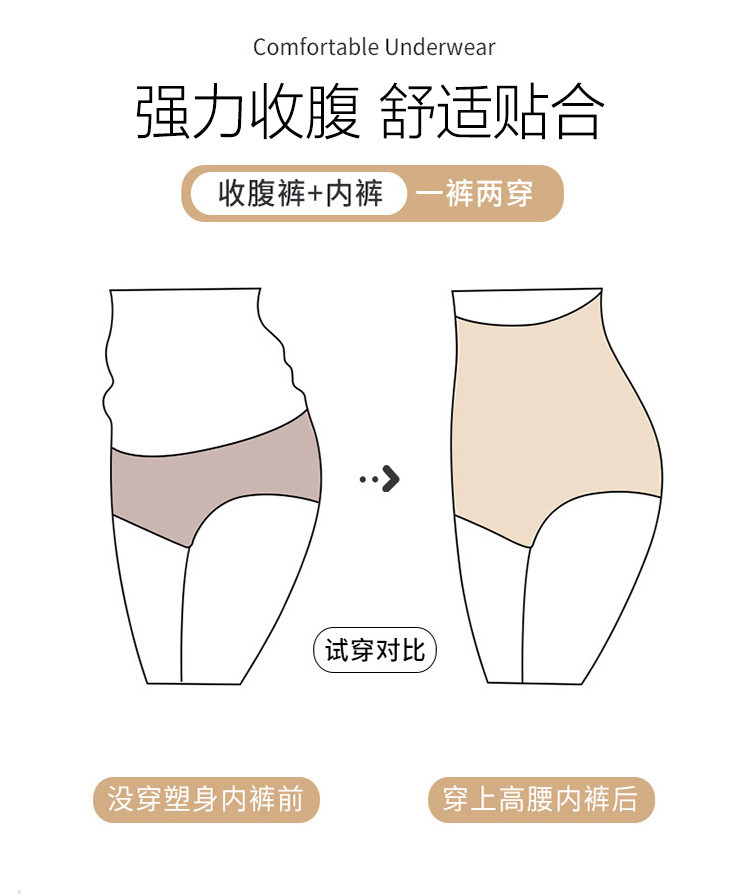 商品名称:【提臀收腹】100%纯棉底裆超薄无痕透气高腰收腹女士内裤 471006