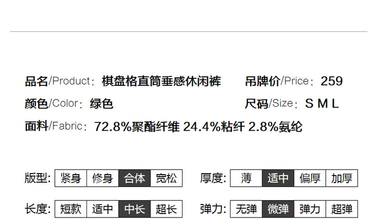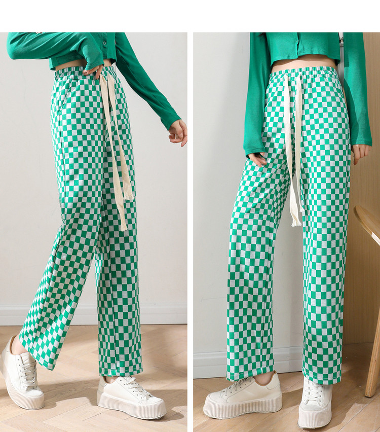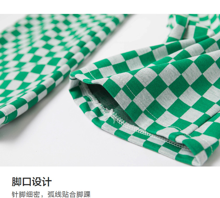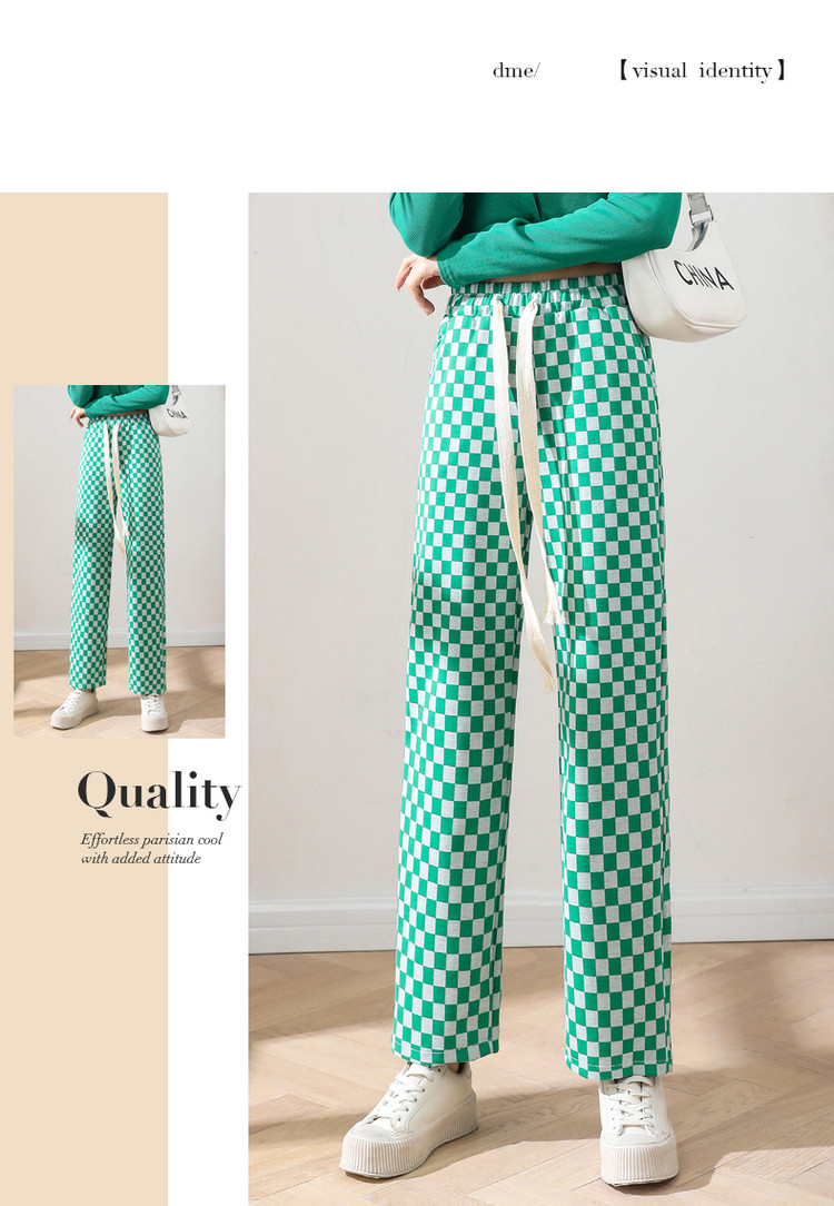 商品名称:【棋盘格直筒裤】春秋松紧腰女裤拼色长裤子运动休闲裤 333825
