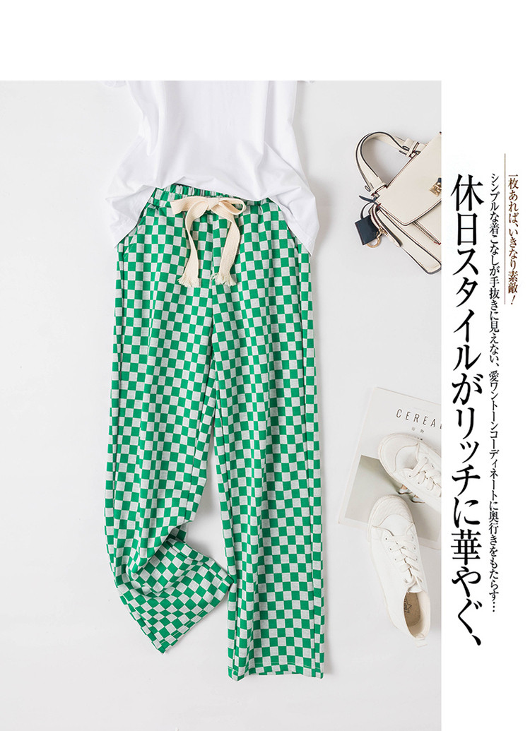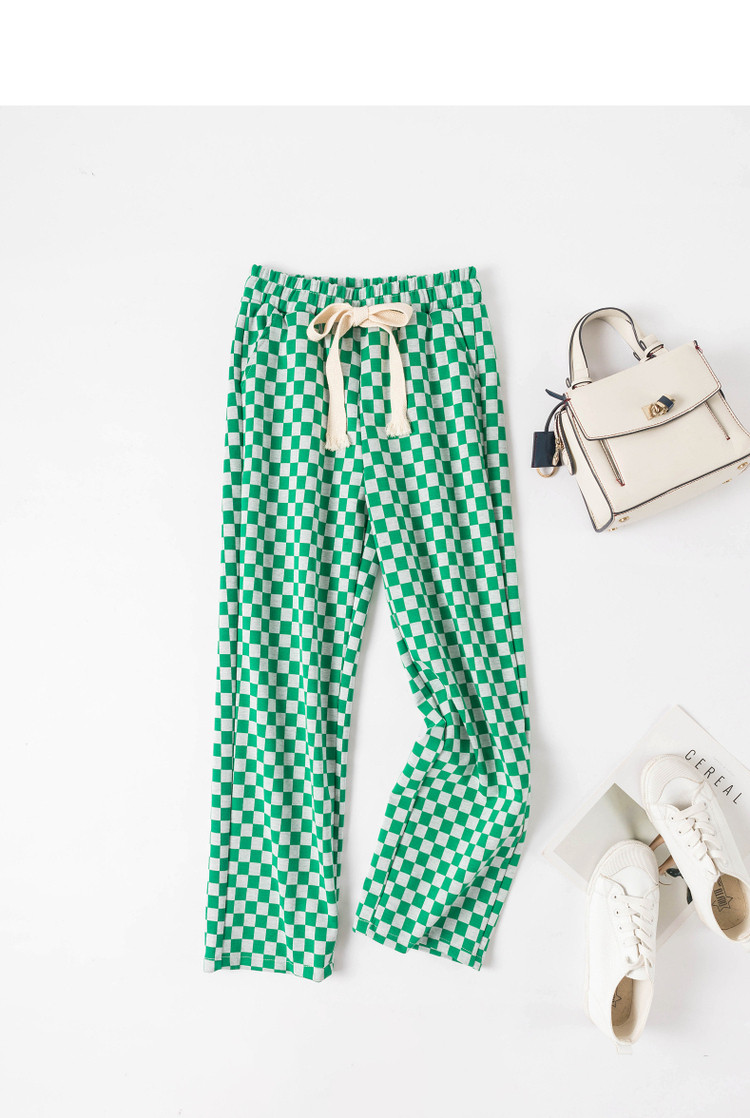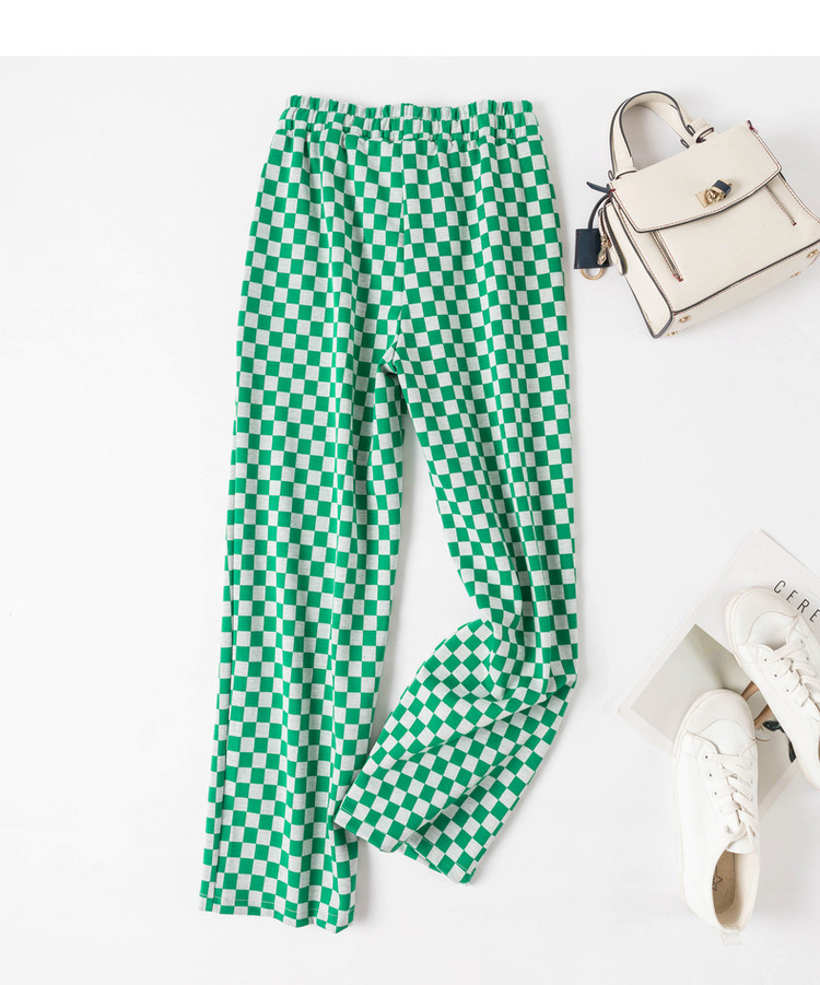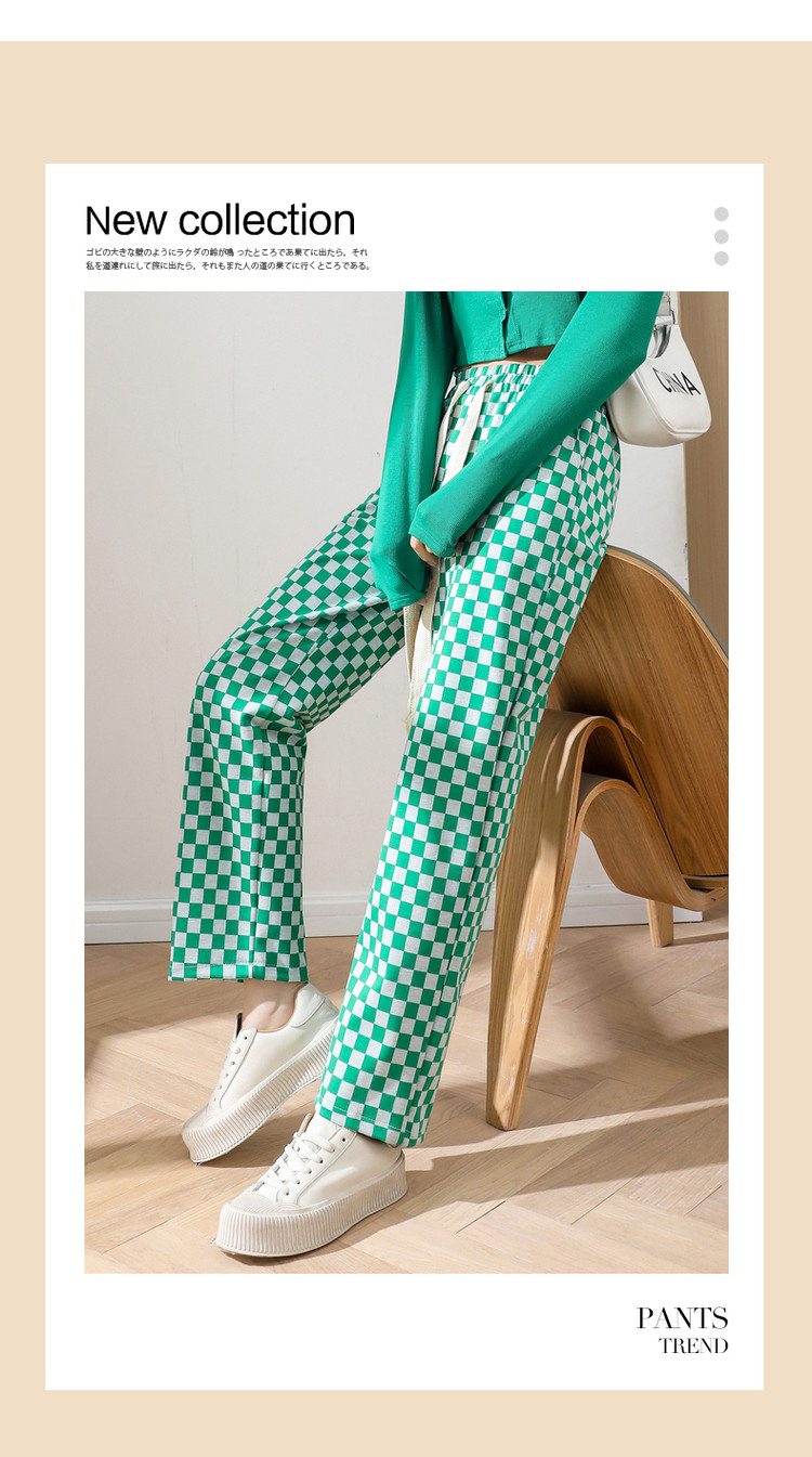 【棋盘格直筒裤】春秋松紧腰女裤拼色长裤子运动休闲裤 333825