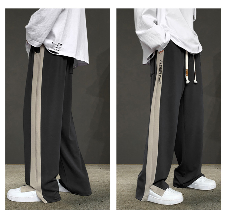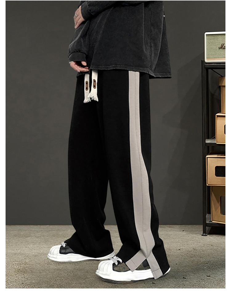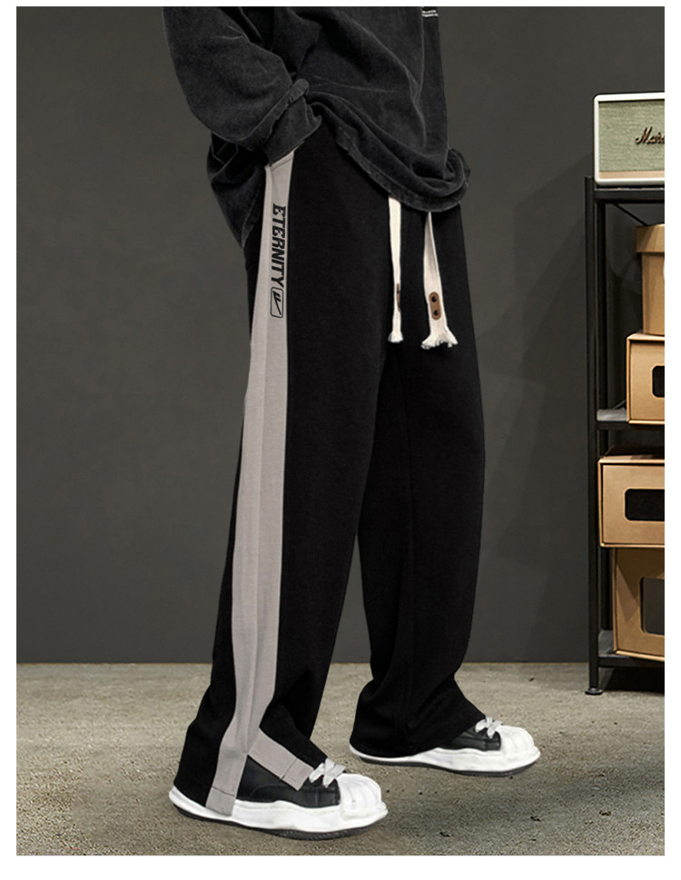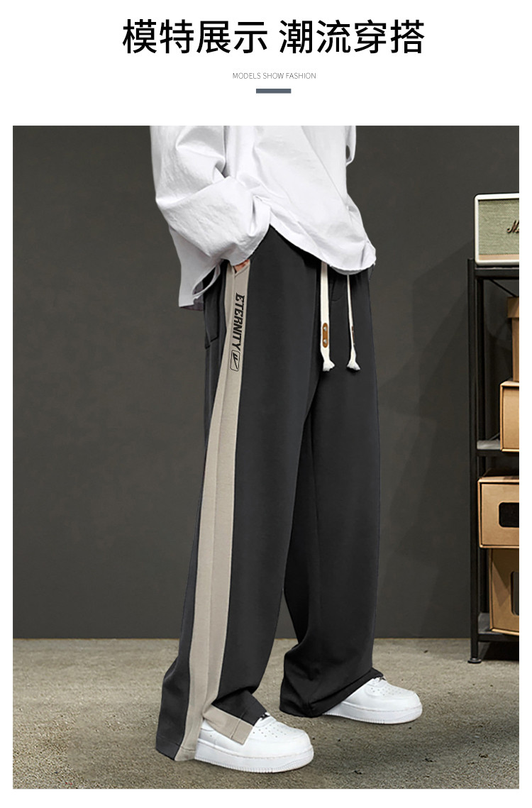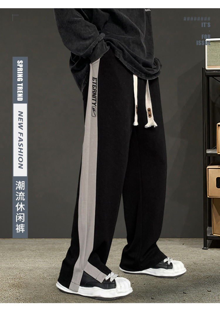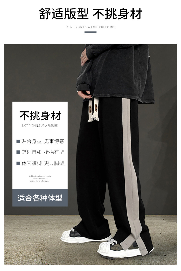 商品名称:运动裤男生春秋季青少年宽松直筒休闲裤潮牌韩版侧边开叉阔腿裤男 390419