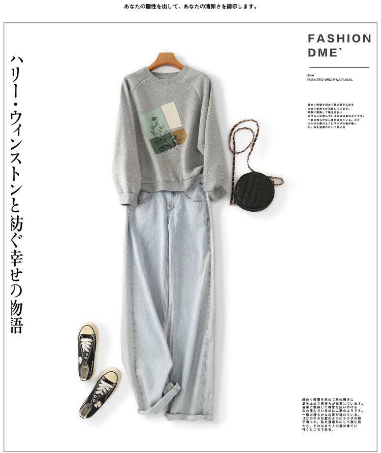 米子旗女式卫衣外套上衣女初秋圆领长袖ins风休闲舒适 089754