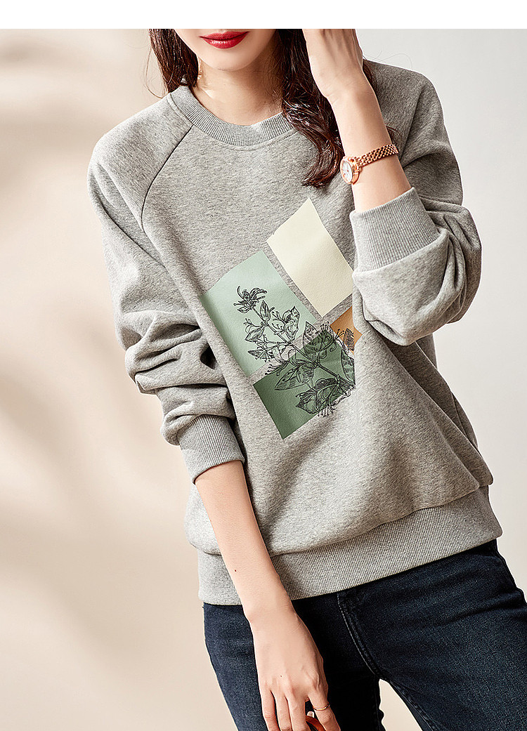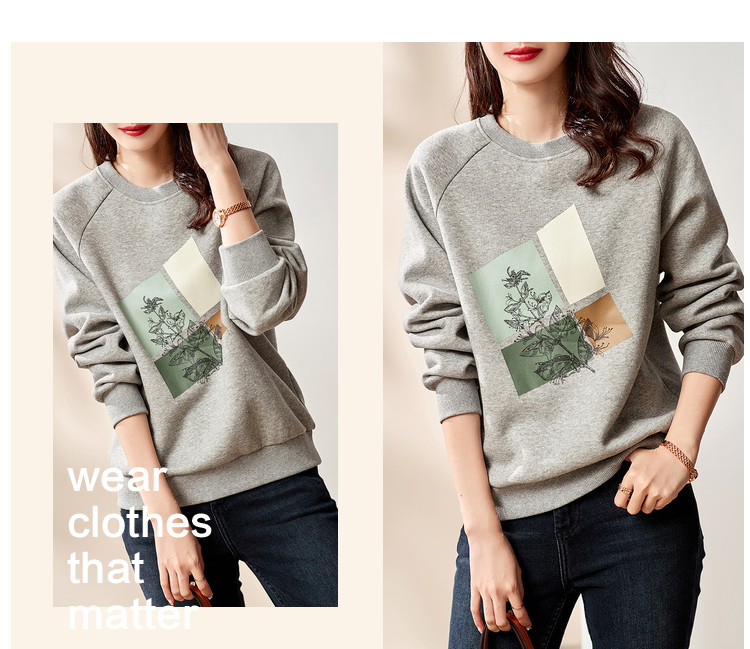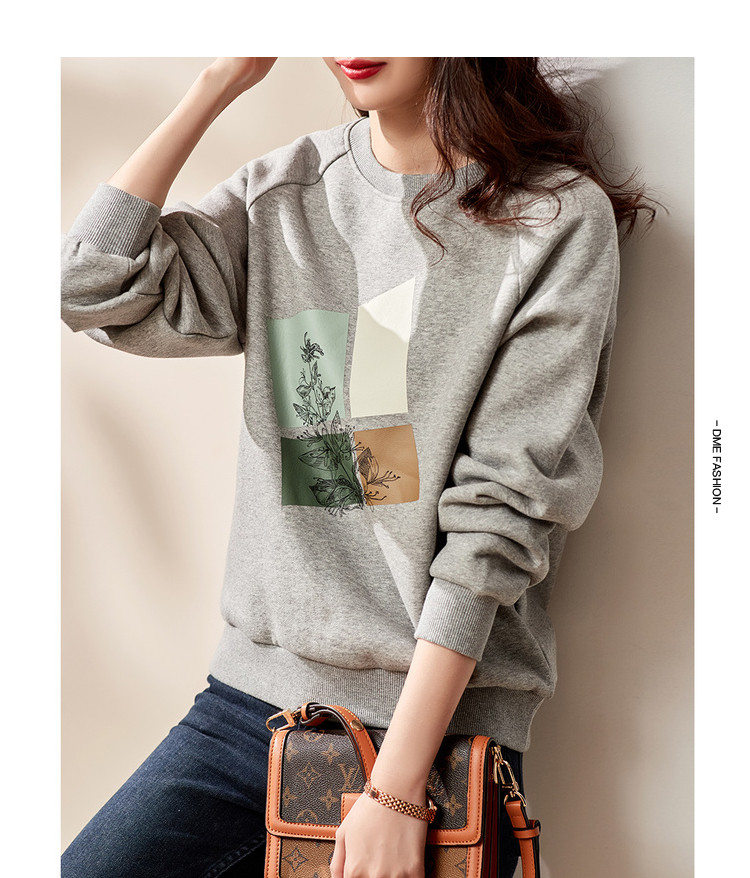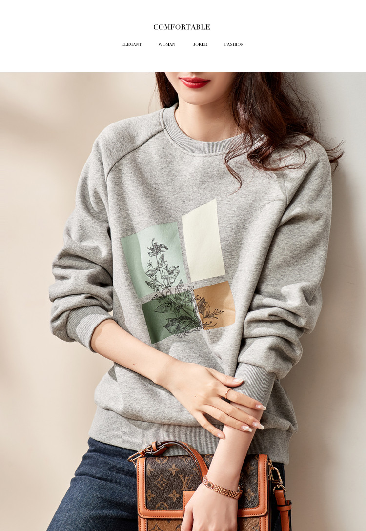 商品名称:【印花卫衣】春秋圆领撞色女上衣女减龄女卫衣女 444545