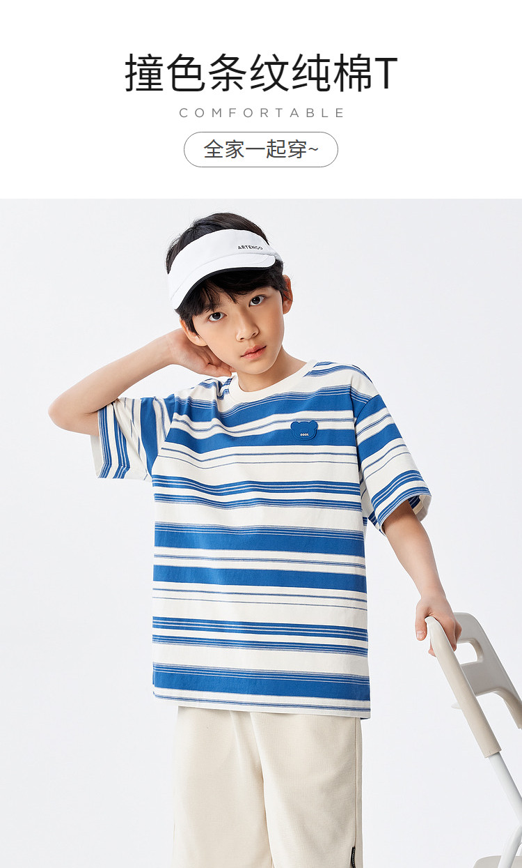 商品名称:亲子款纯棉儿童T恤男童短袖女童夏装宝宝条纹运动打底衫百搭童装 660933
