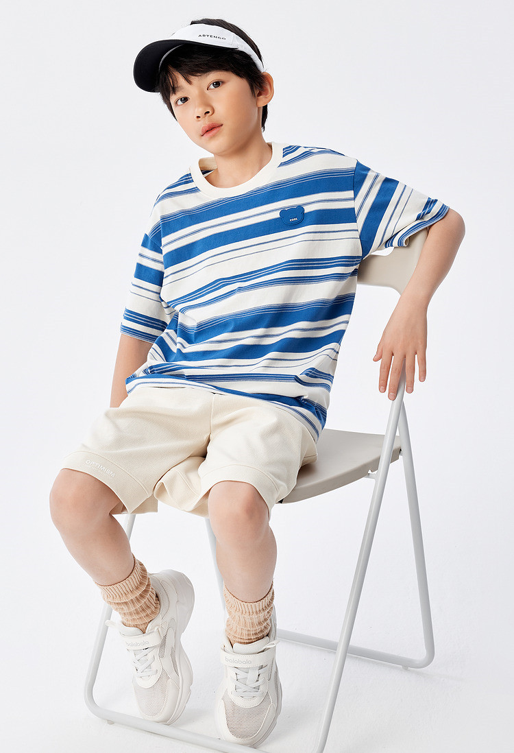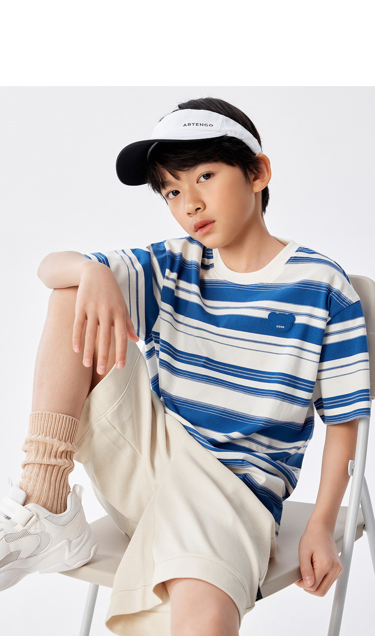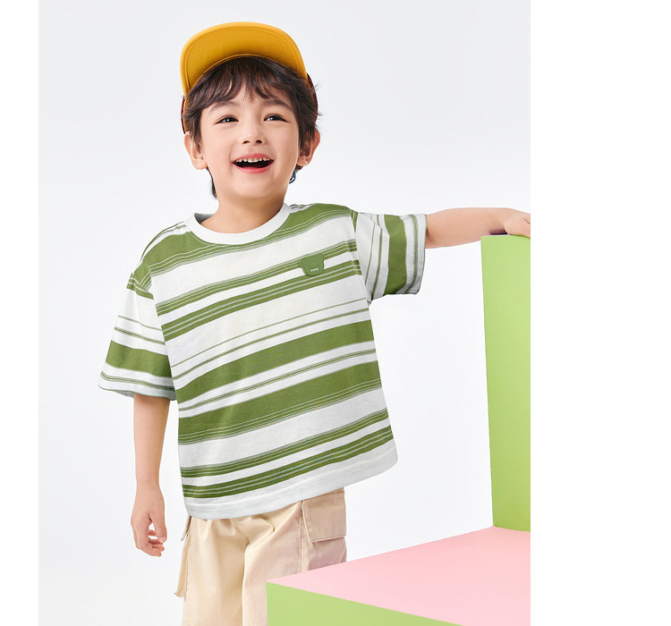 亲子款纯棉儿童T恤男童短袖女童夏装宝宝条纹运动打底衫百搭童装 660933