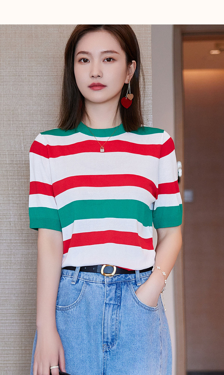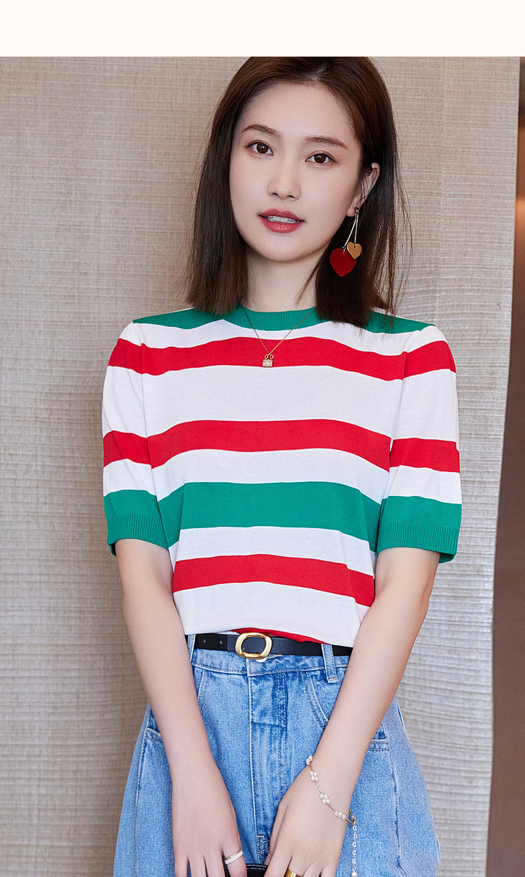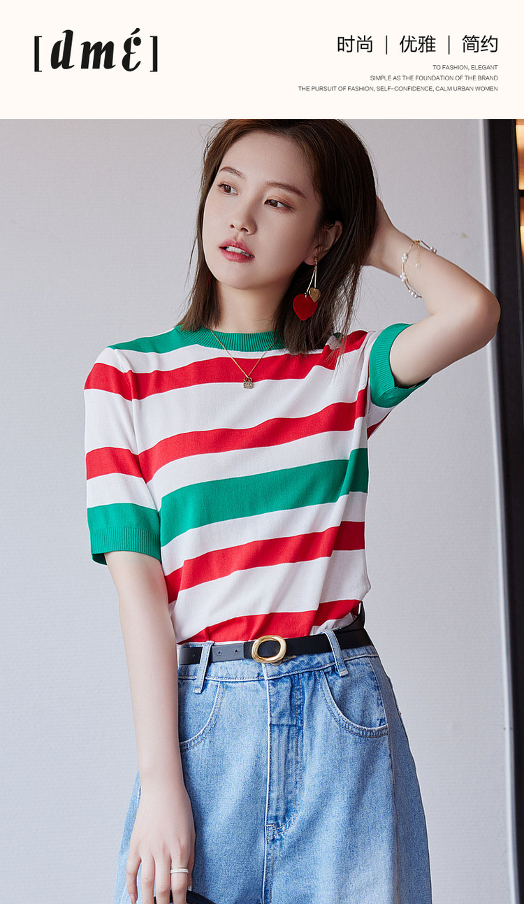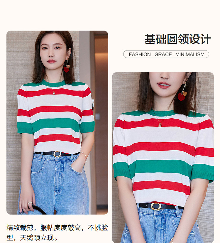 商品名称:【复古撞色条纹线衫】夏季圆领短袖针织衫女上衣 339841