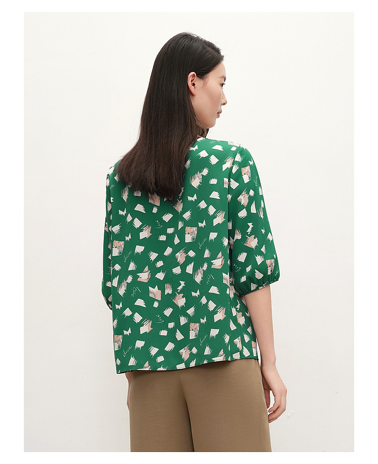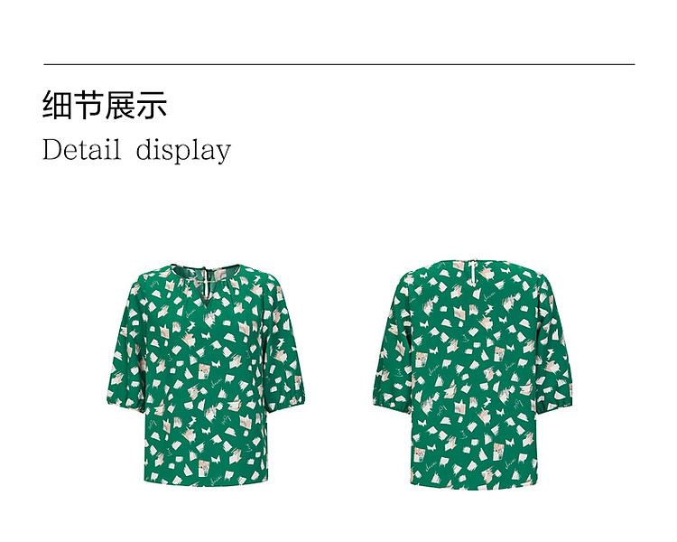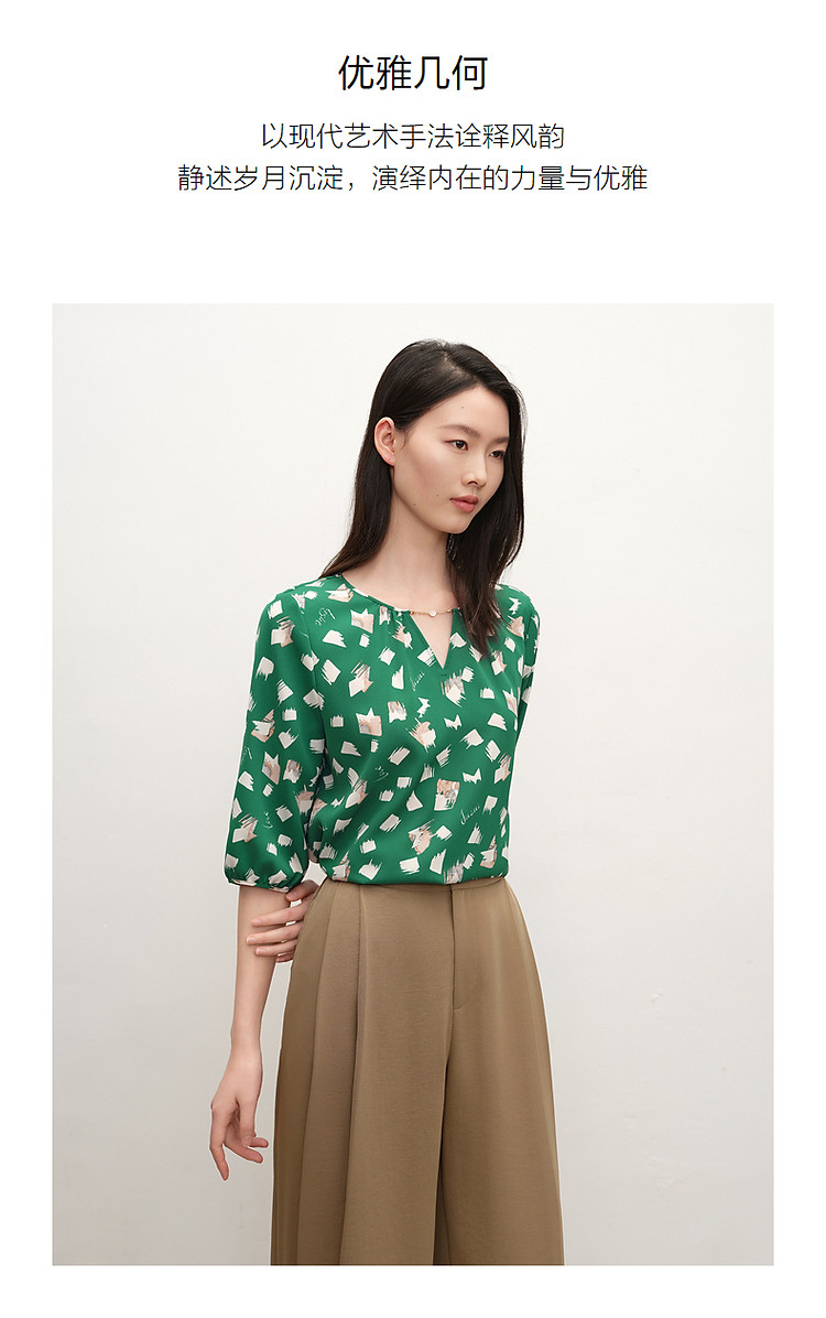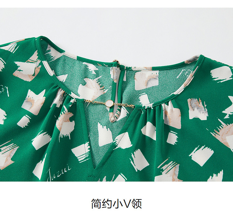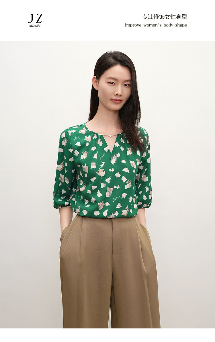 商品名称:玖姿旗下安娜蔻系列优雅清新几何印花中袖雪纺上衣女秋季 529036