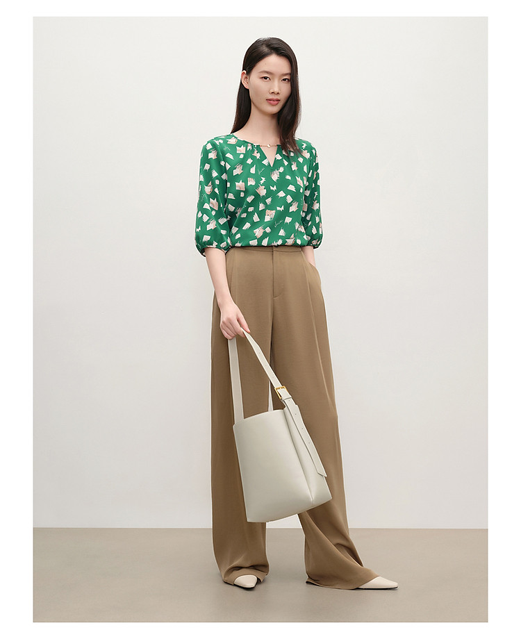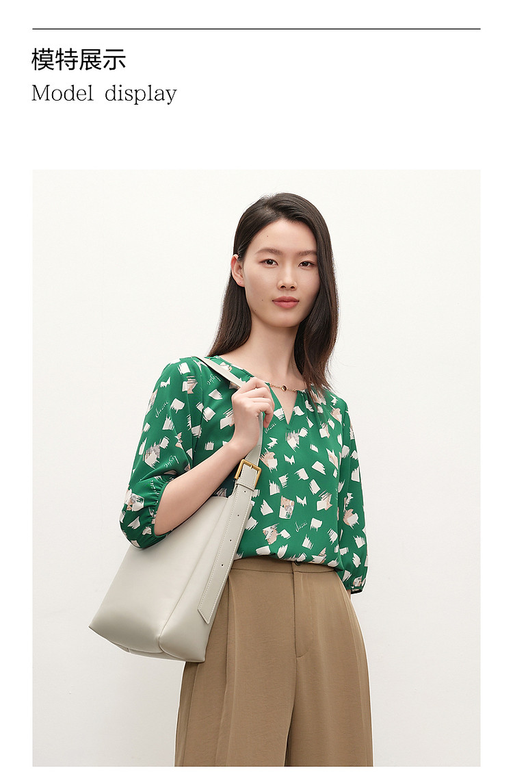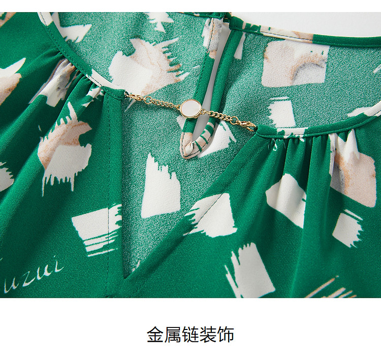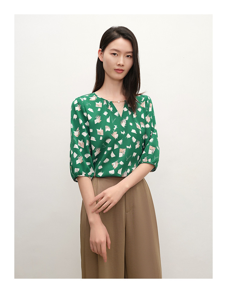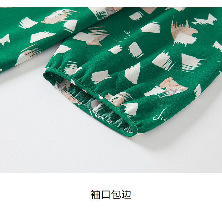 商品名称:玖姿旗下安娜蔻系列优雅清新几何印花中袖雪纺上衣女秋季 529036