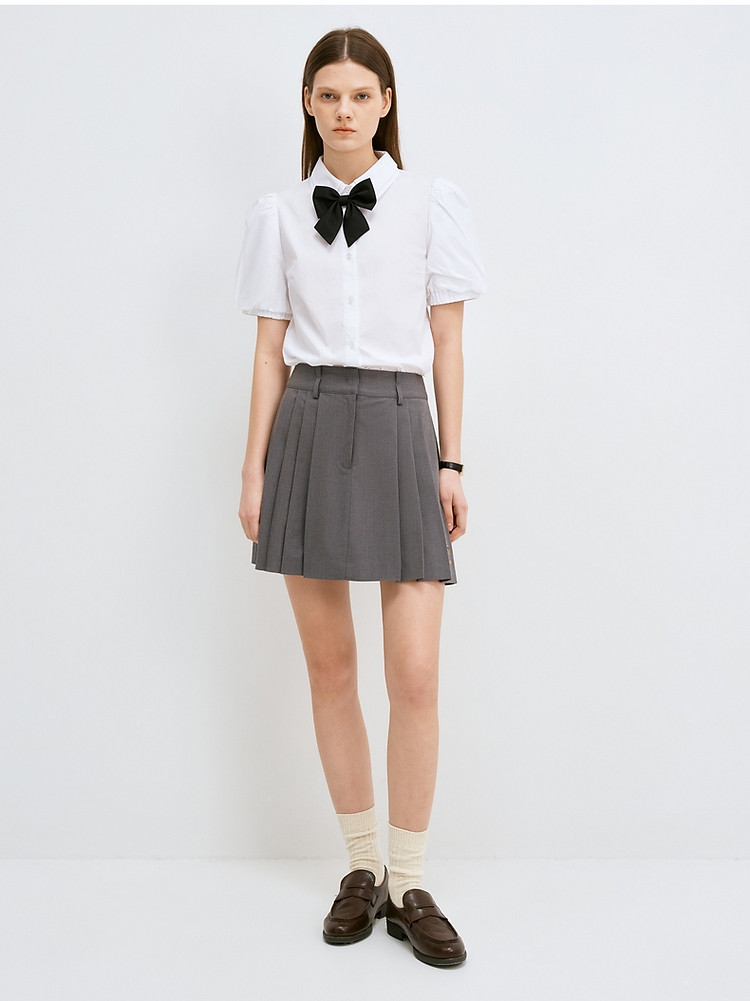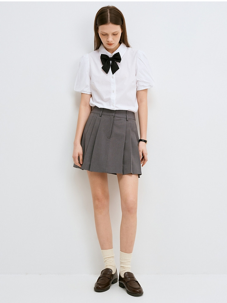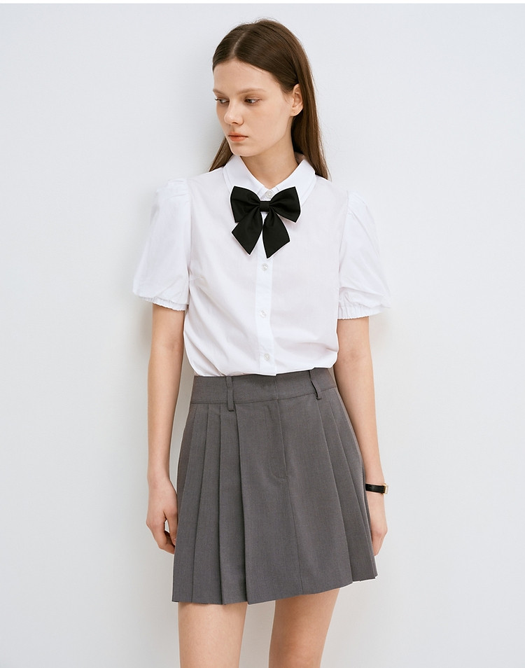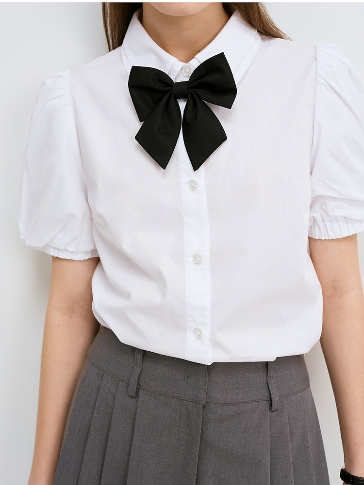衬衫女夏季薄款甜美风娃娃领短袖衬衣上衣女 048193