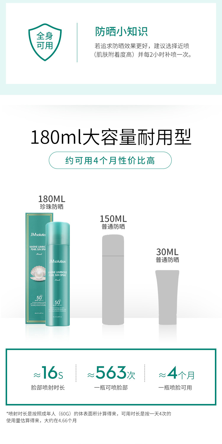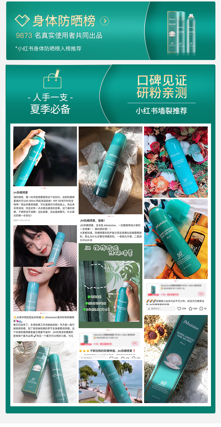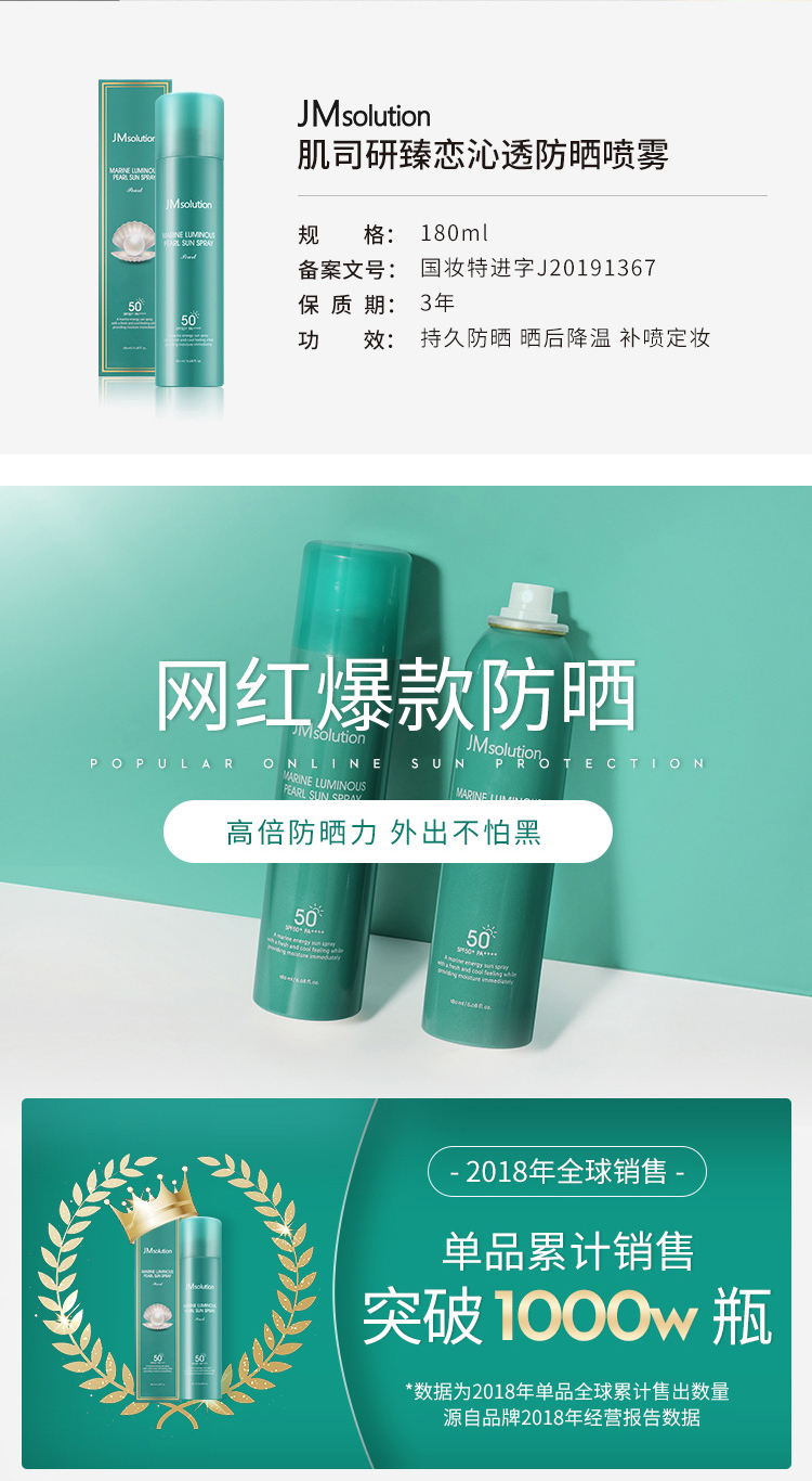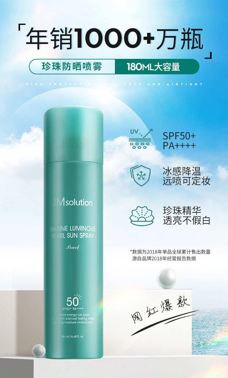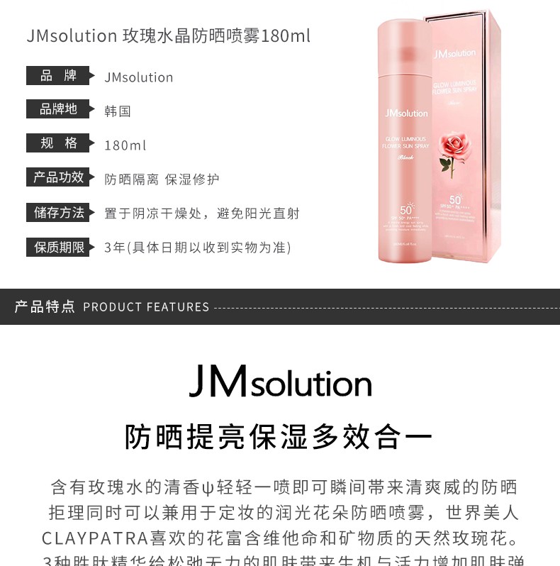 商品名称:JM solution 珍珠/玫瑰防晒喷雾防晒霜 180Ml SPF50+ PA++++