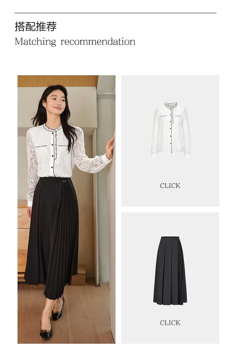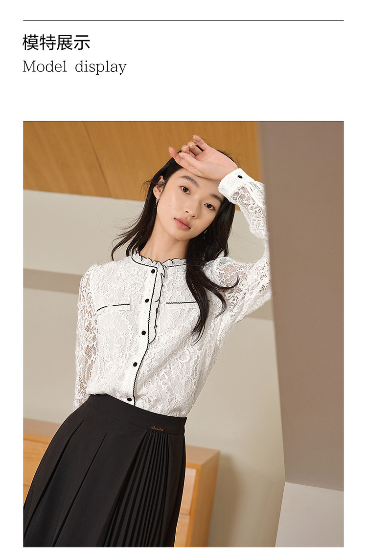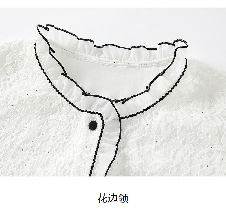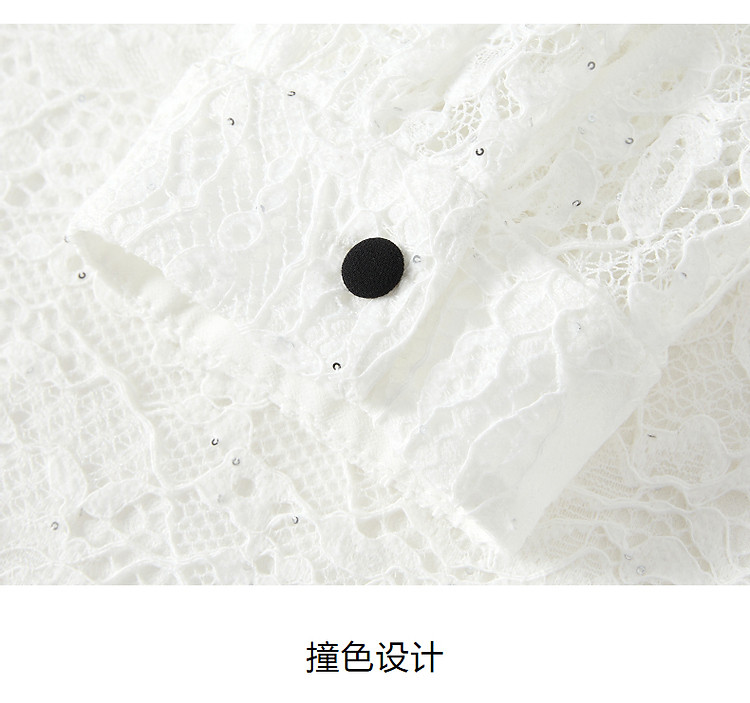 商品名称:旗下安娜蔻系列东方洛可可亮片蕾丝撞色肌理长袖衬衫女秋季 465996