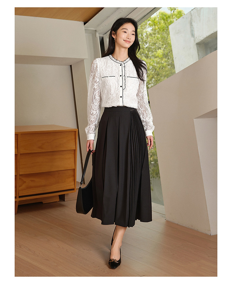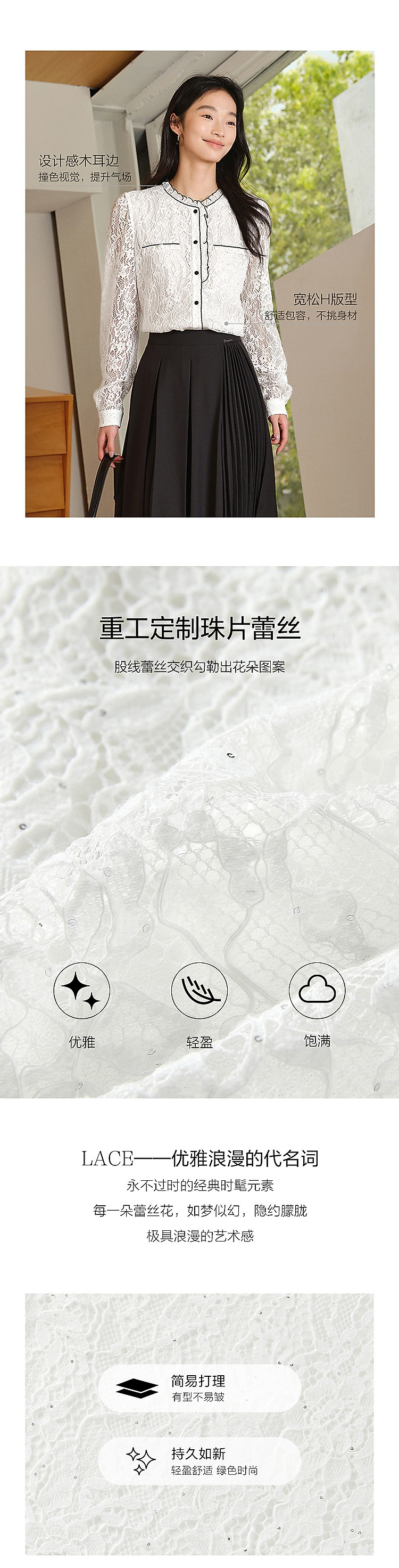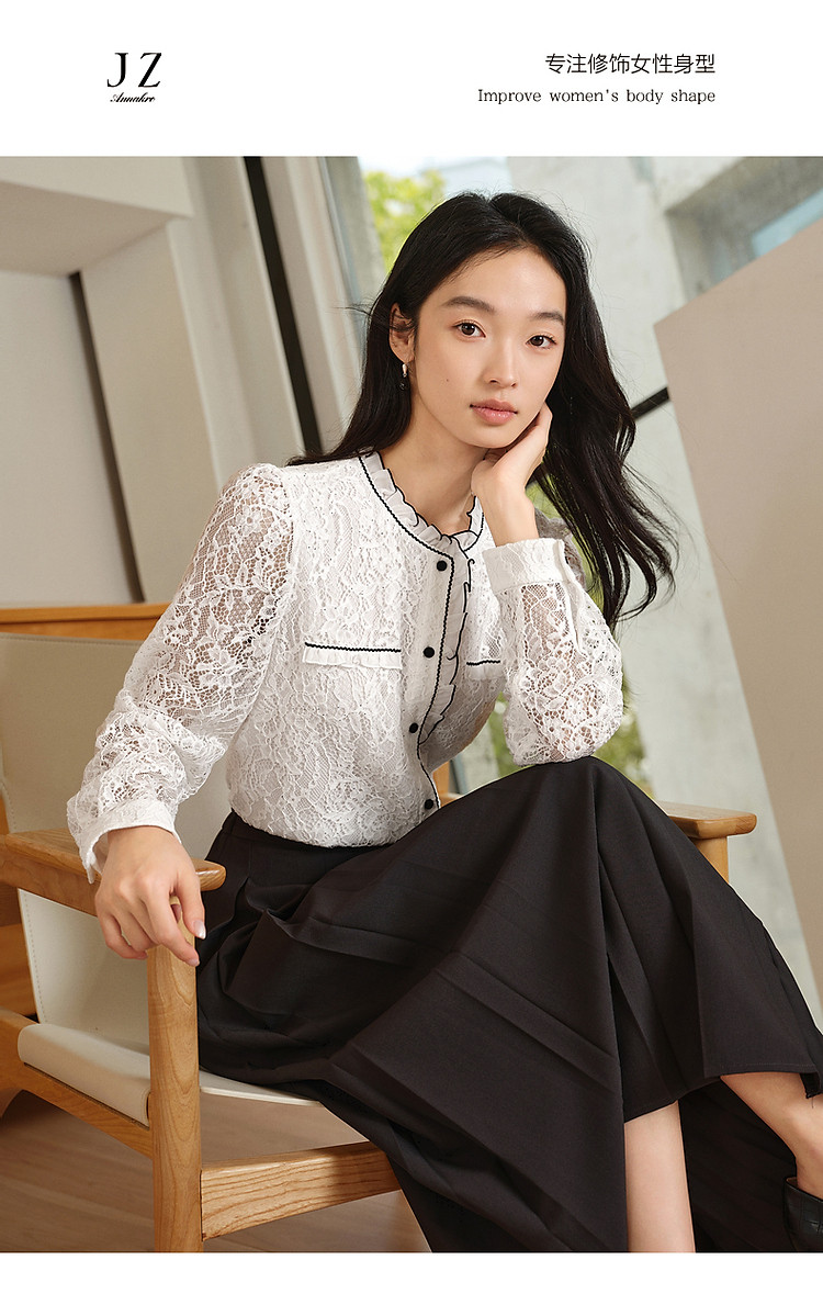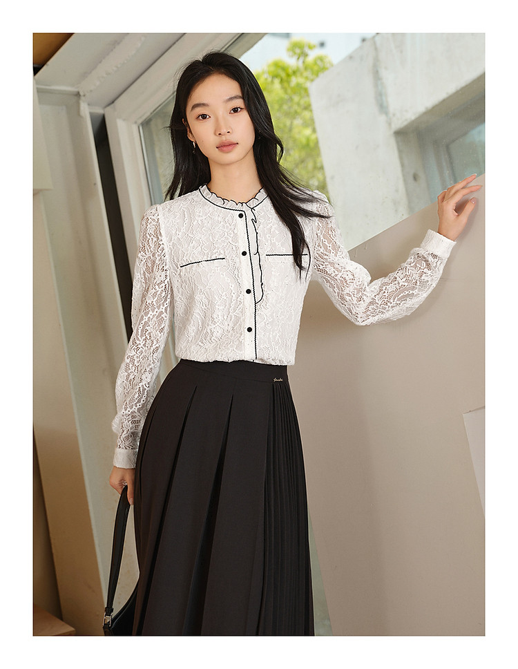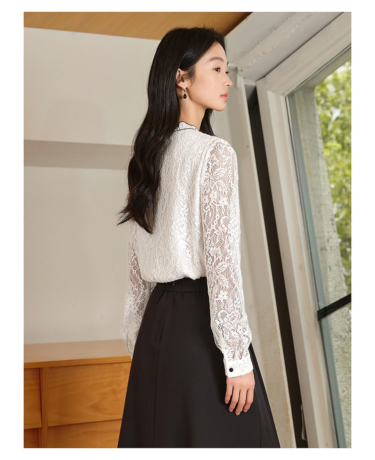 旗下安娜蔻系列东方洛可可亮片蕾丝撞色肌理长袖衬衫女秋季 465996
