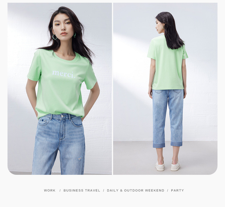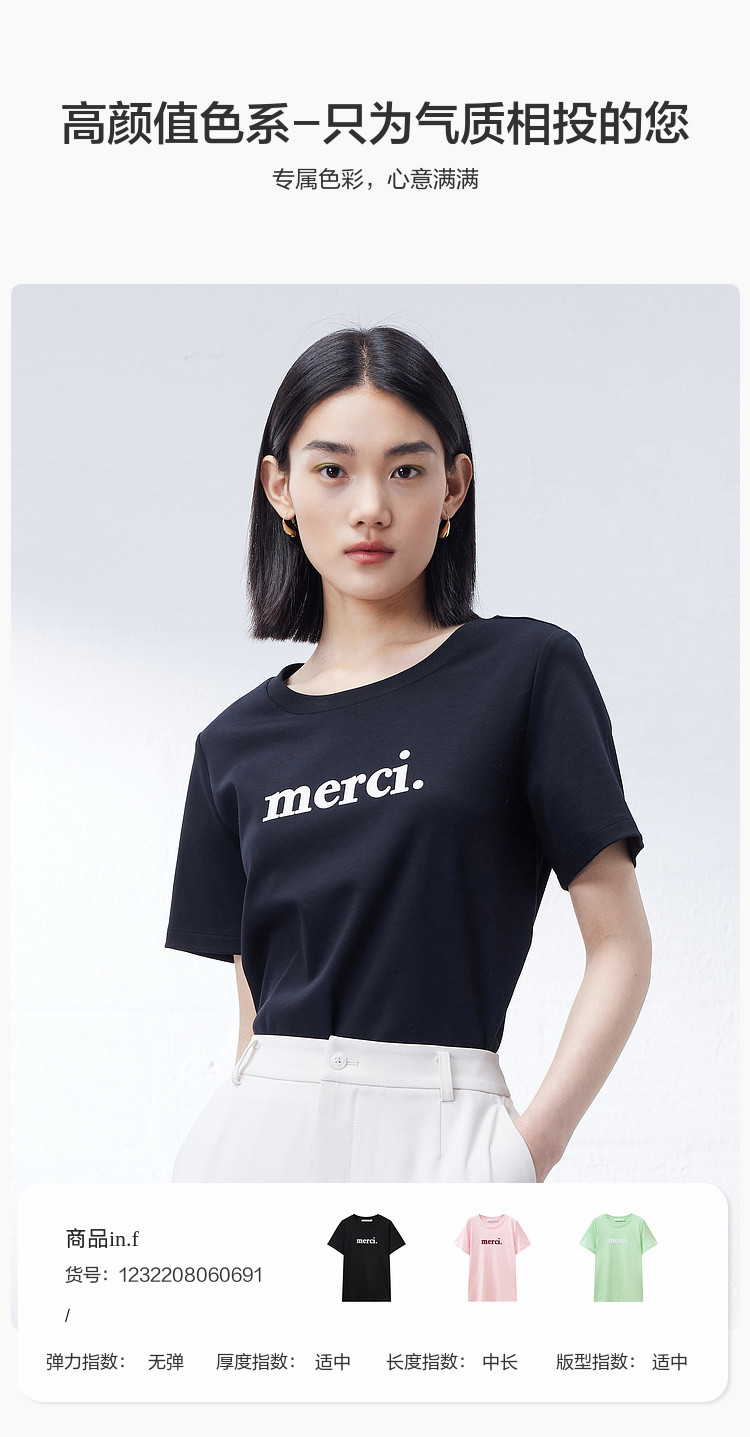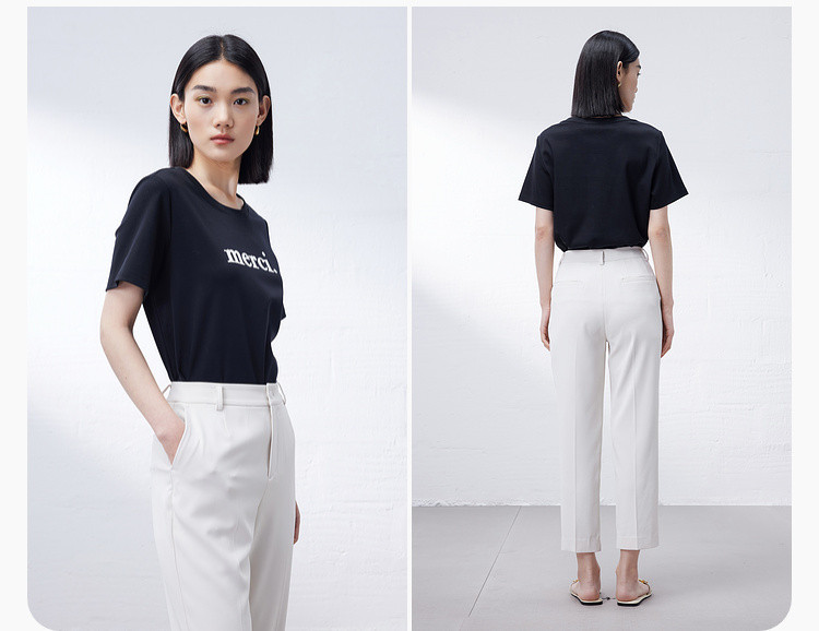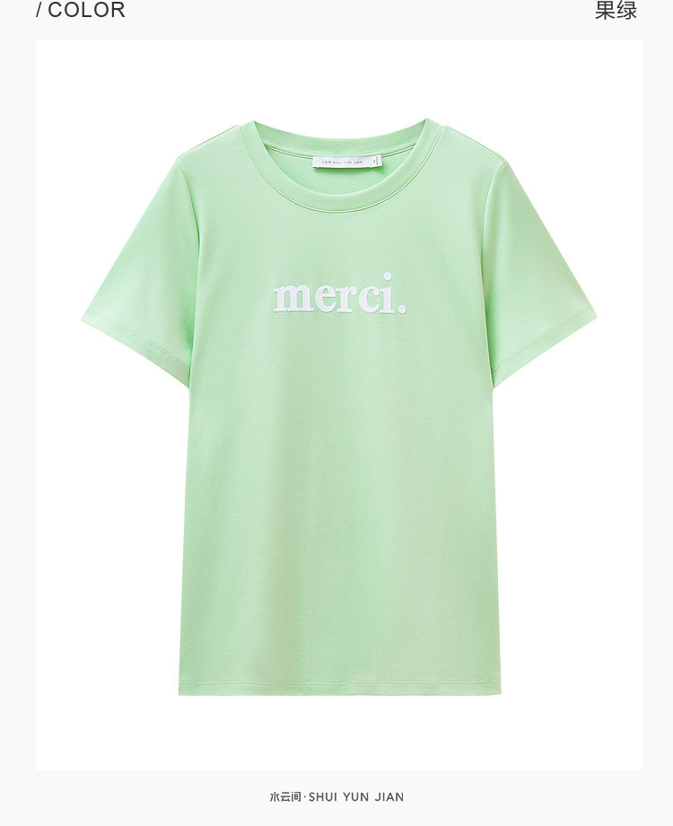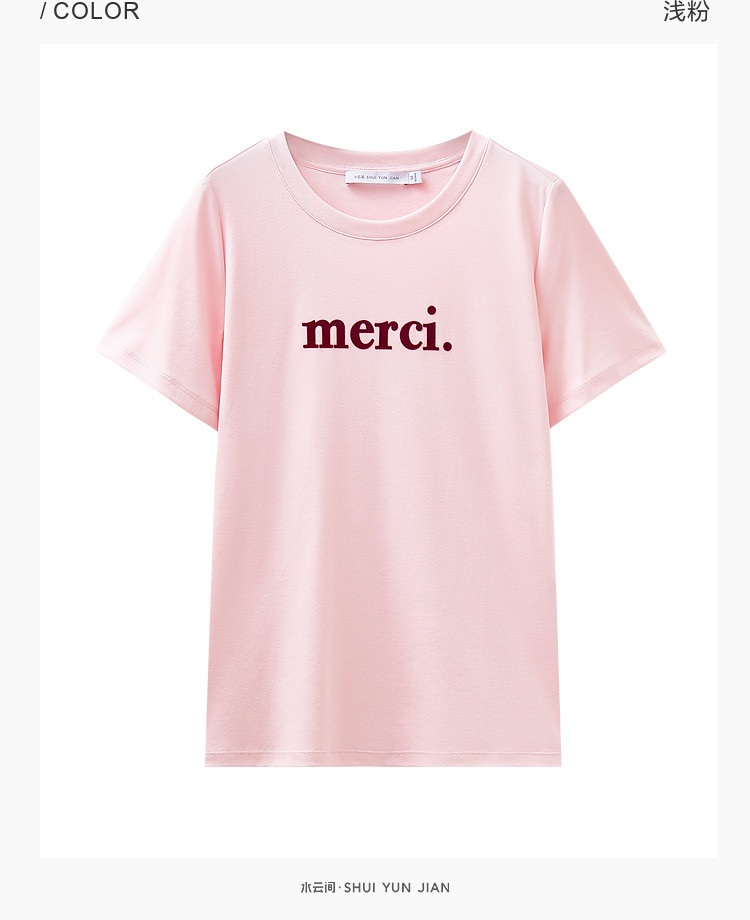 商品名称:纯棉字母短袖T恤女夏季小个子简约百搭体恤显瘦休闲圆领上衣女 668611