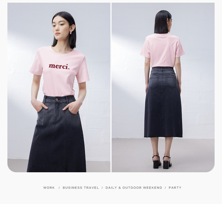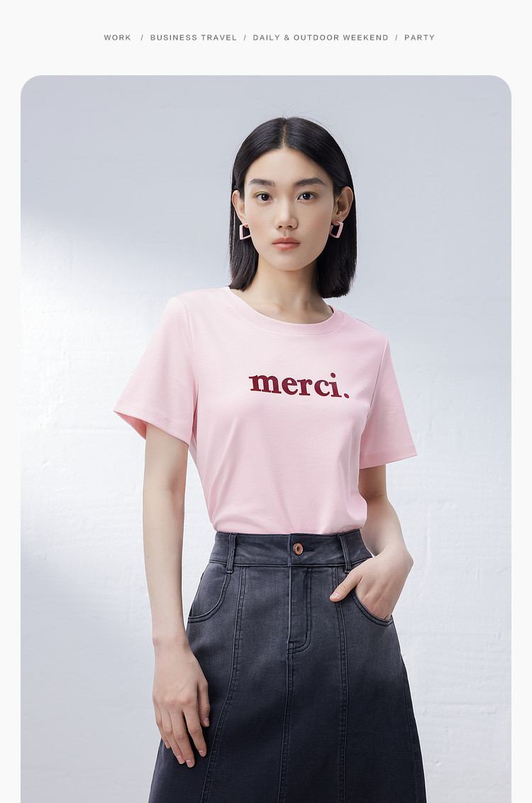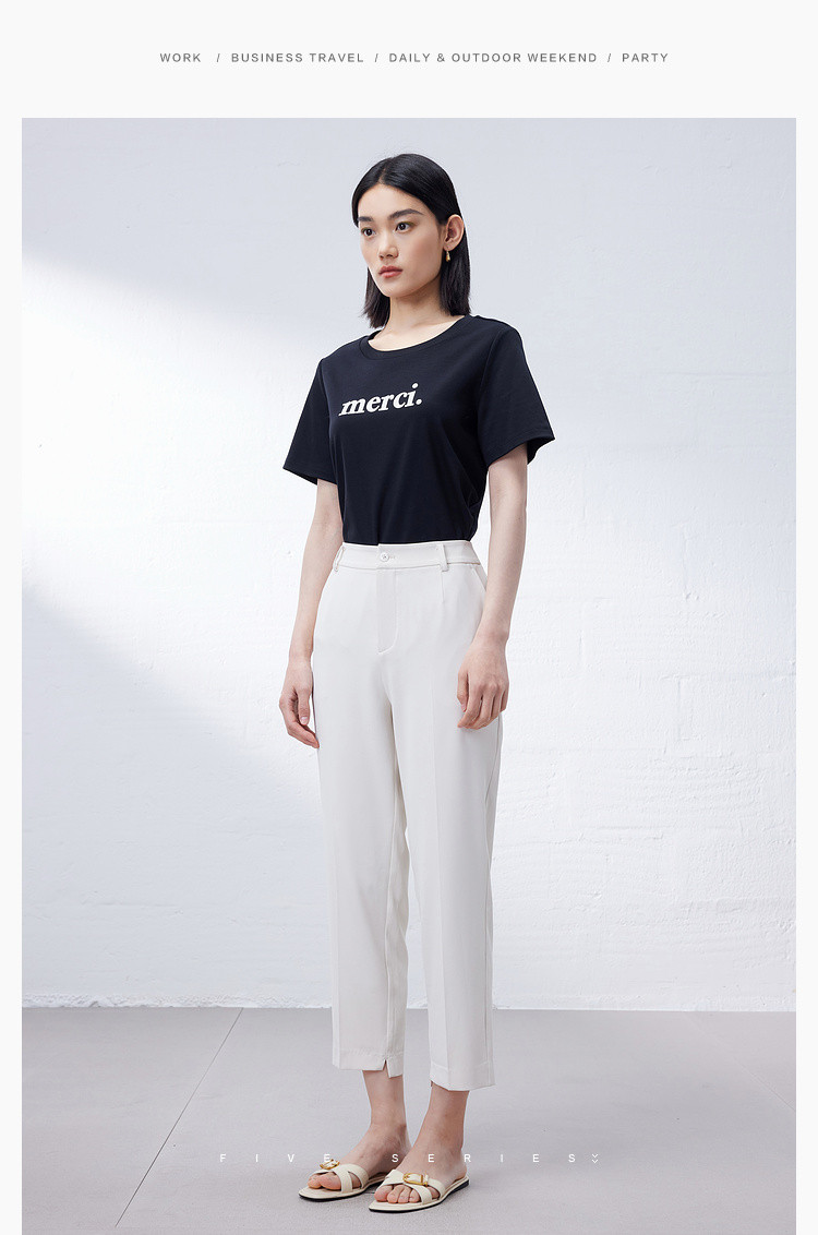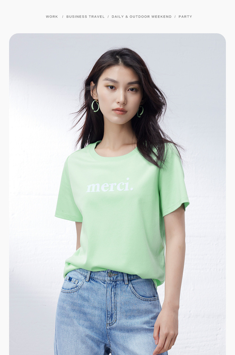 商品名称:纯棉字母短袖T恤女夏季小个子简约百搭体恤显瘦休闲圆领上衣女 668611