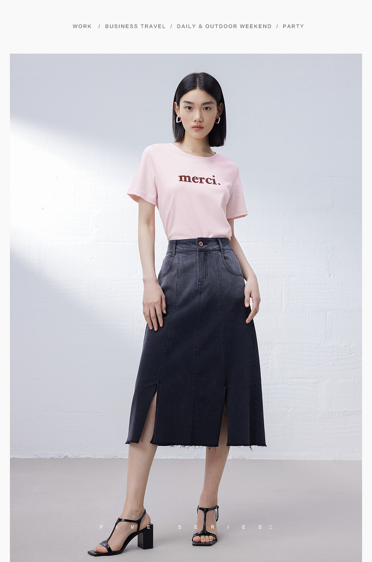 米子旗趣味卡通印花大码T恤夏季女通勤舒适侧边开叉短袖上衣 225946