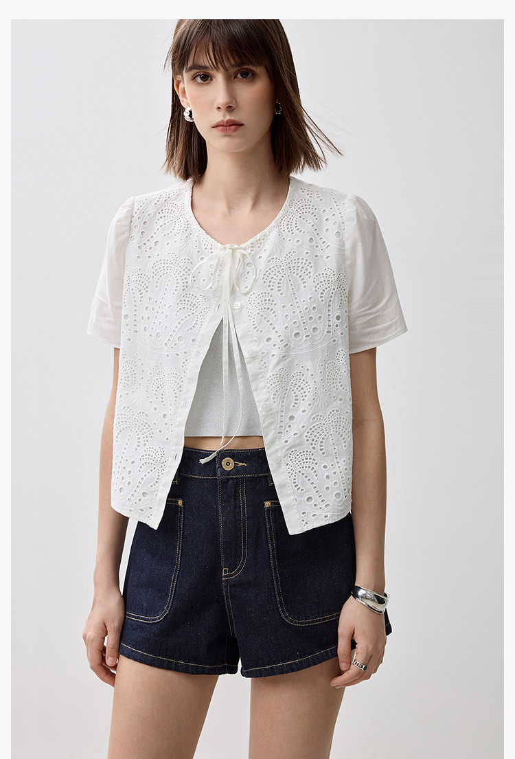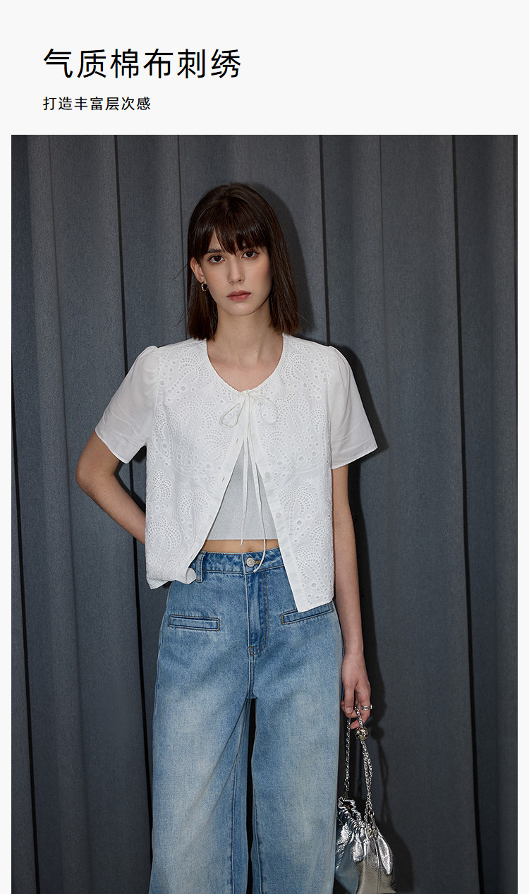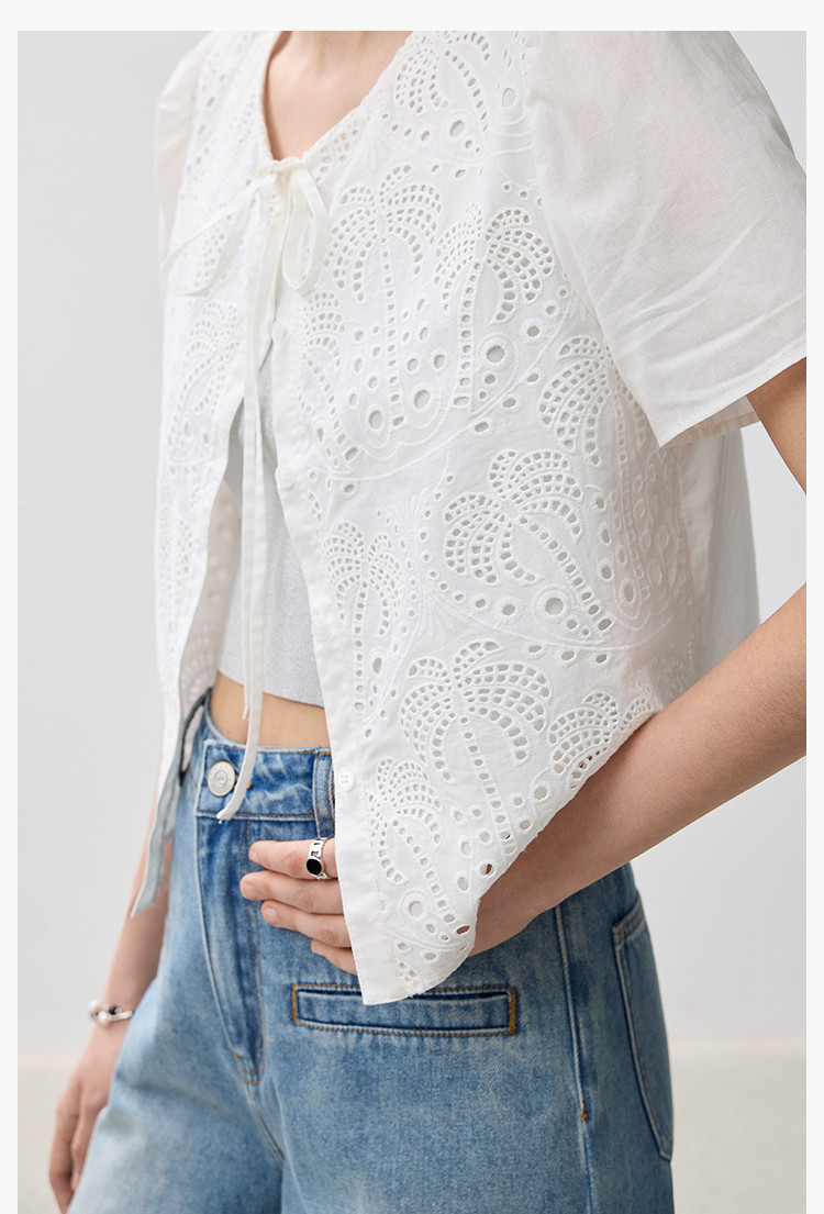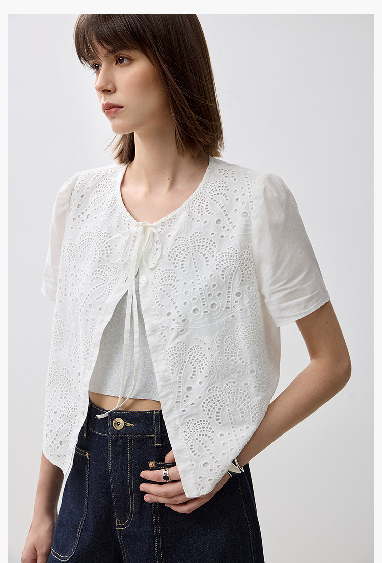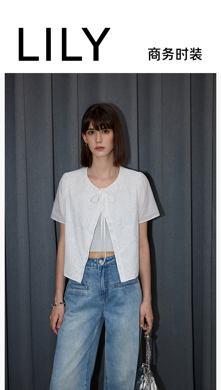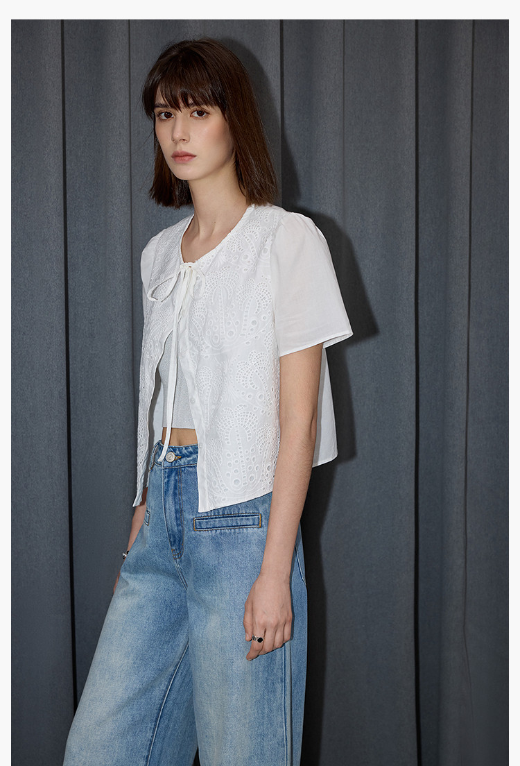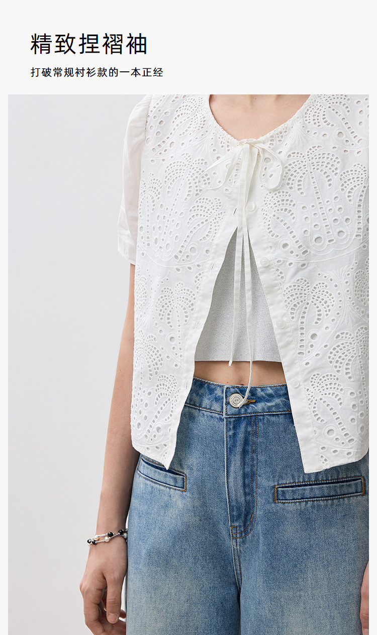 春季款高级感法式绑带泡泡袖优雅气质职场全棉舒适通勤衬衫 290907