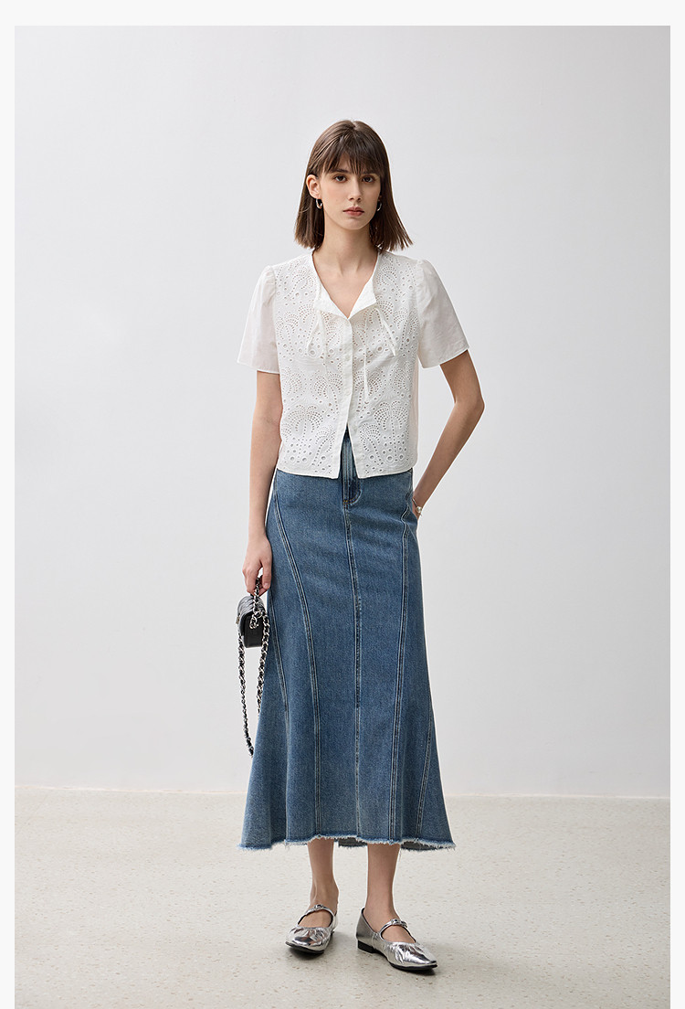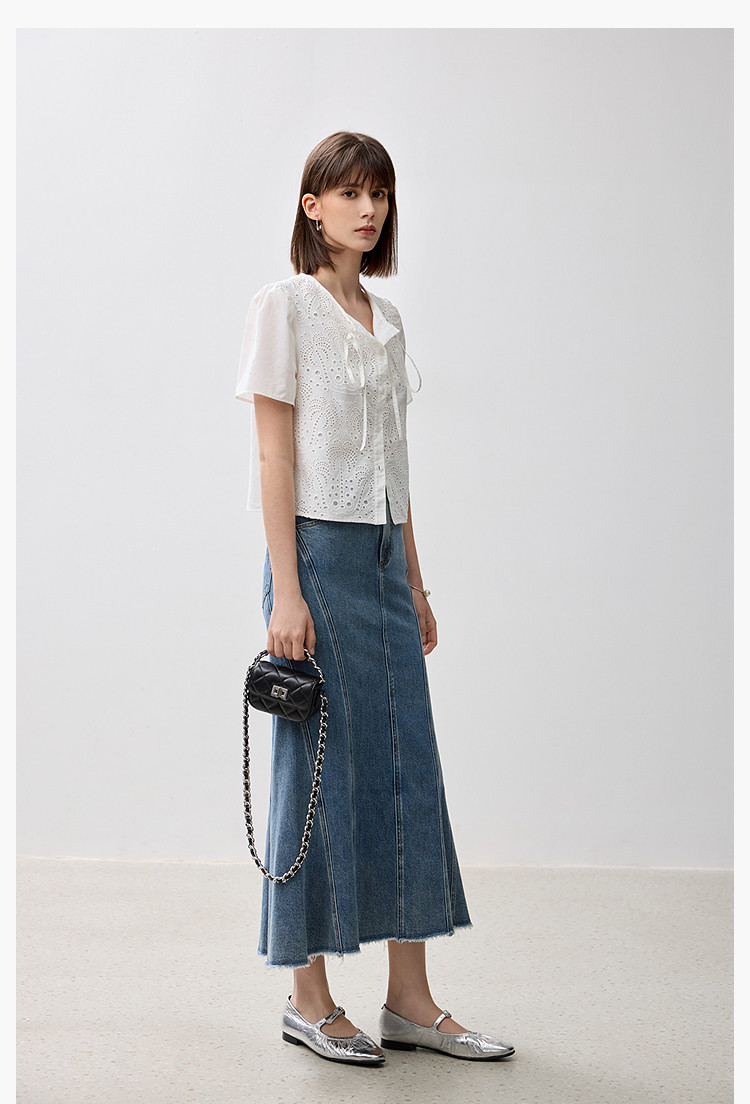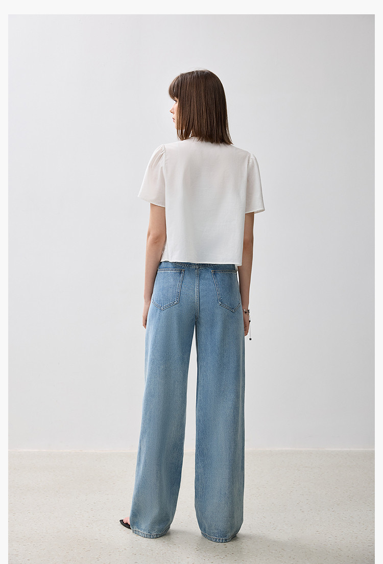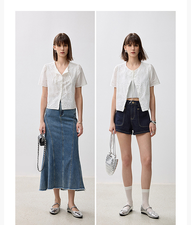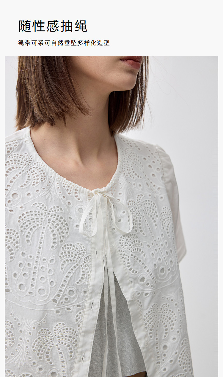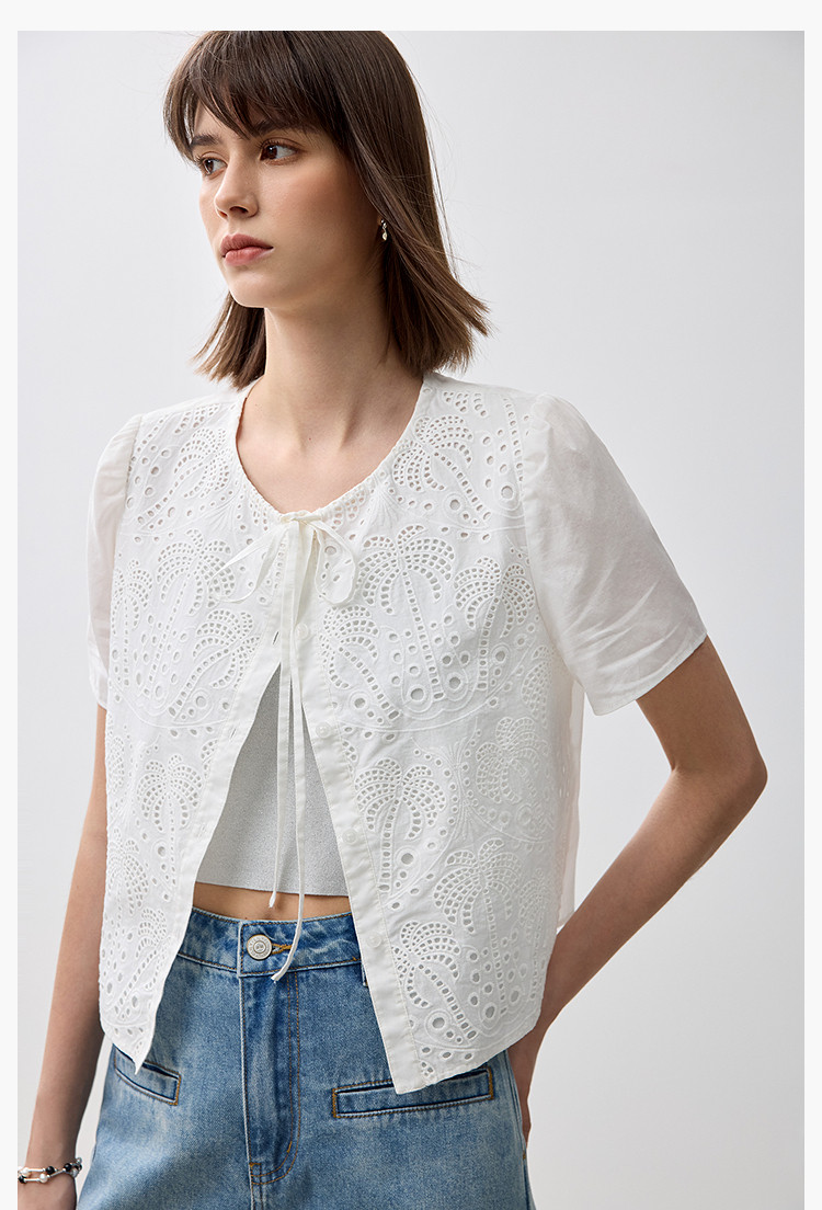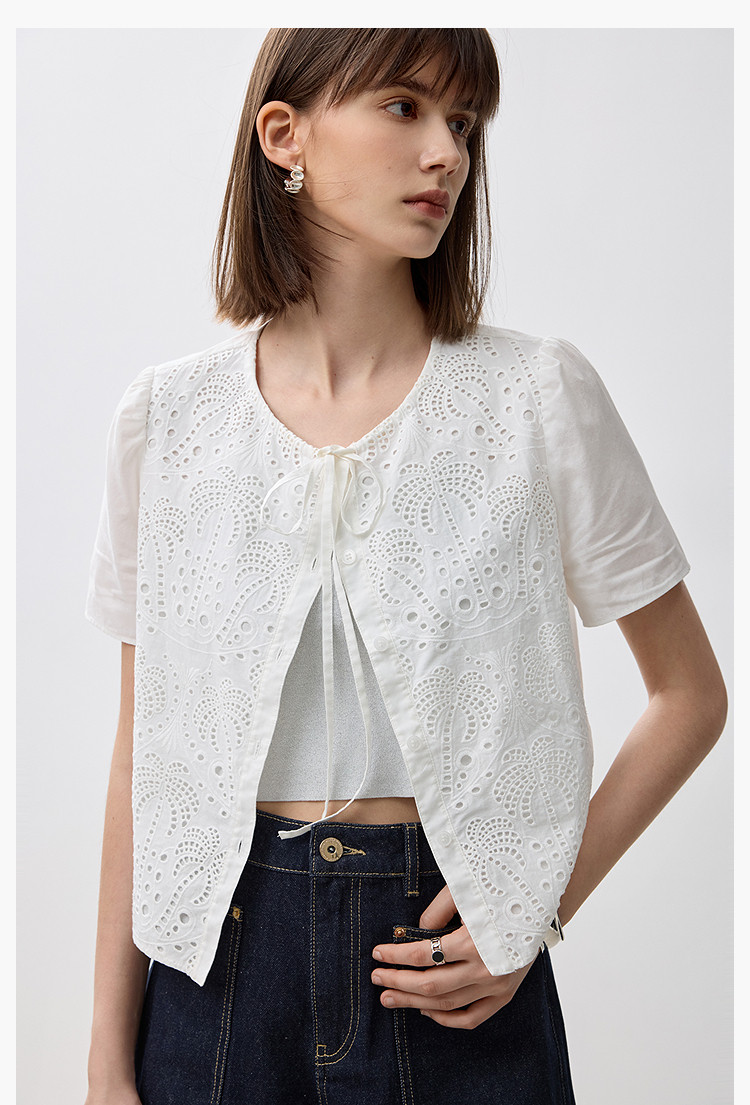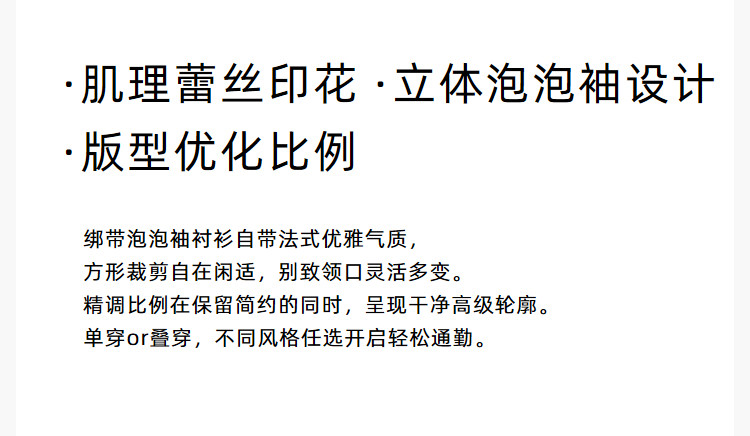 商品名称:春季款高级感法式绑带泡泡袖优雅气质职场全棉舒适通勤衬衫 290907