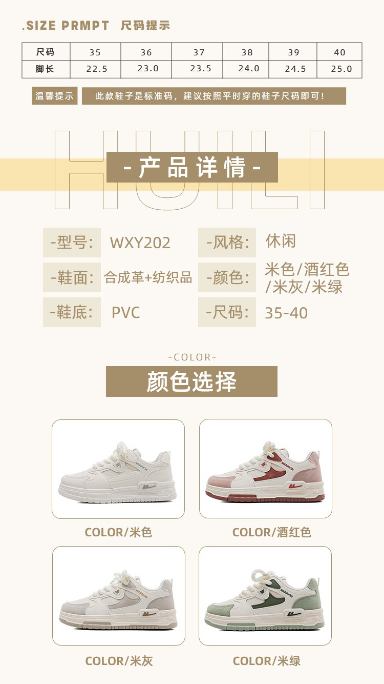 商品名称:【春季爆款】时尚潮款厚底小白鞋轻便百搭学院风拼色板鞋 725827