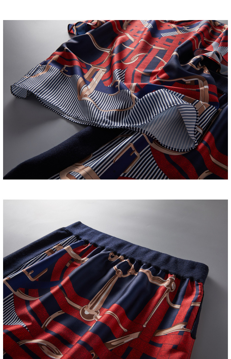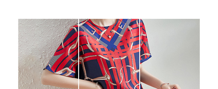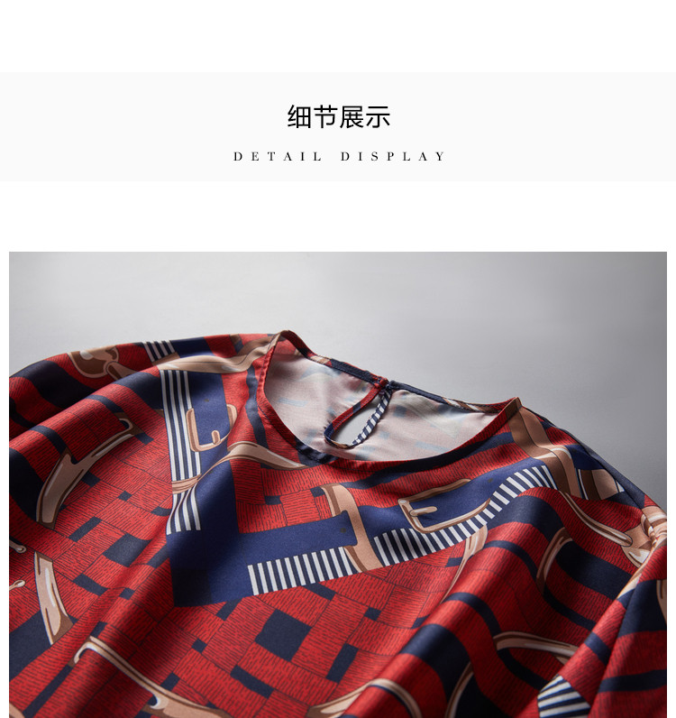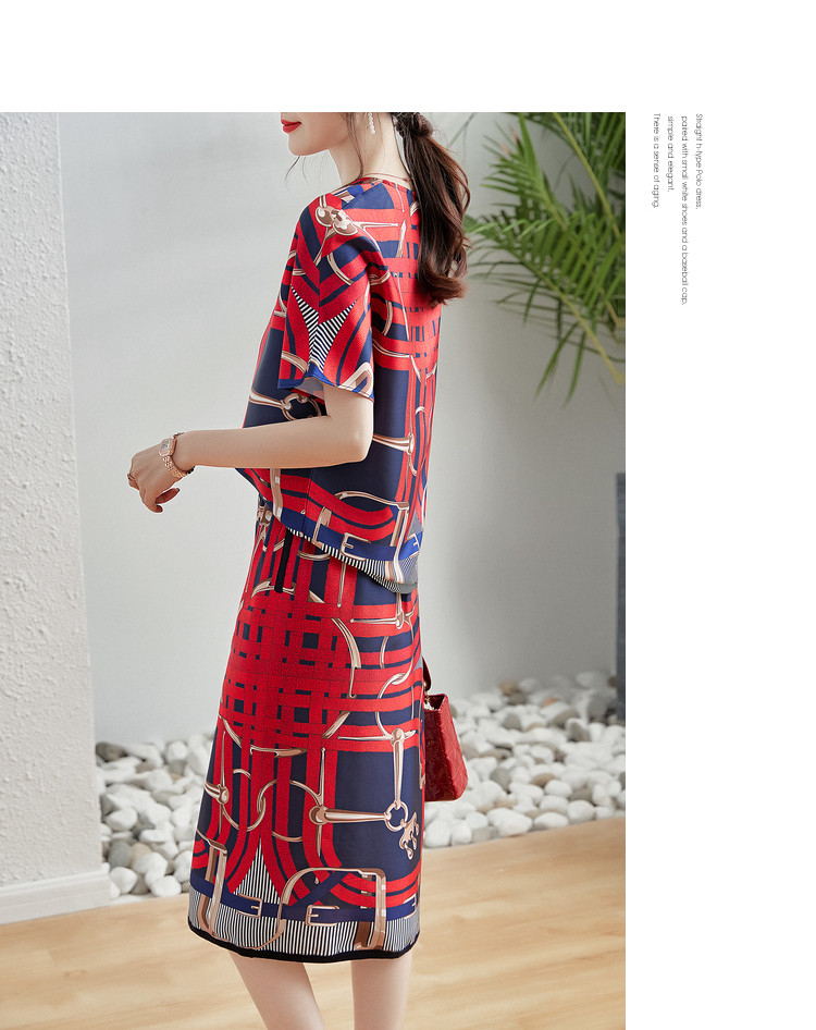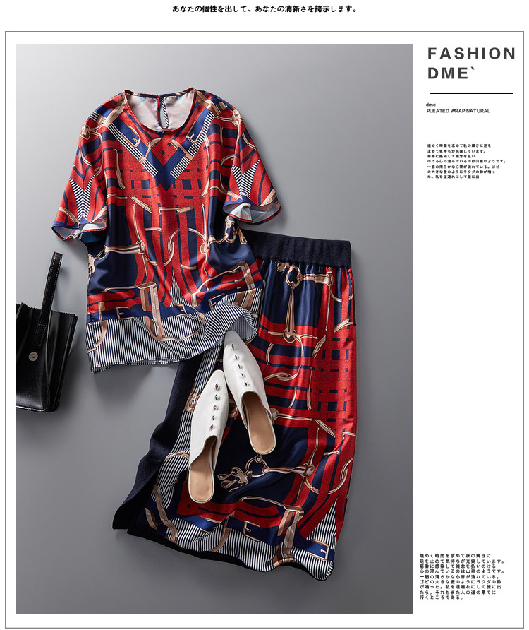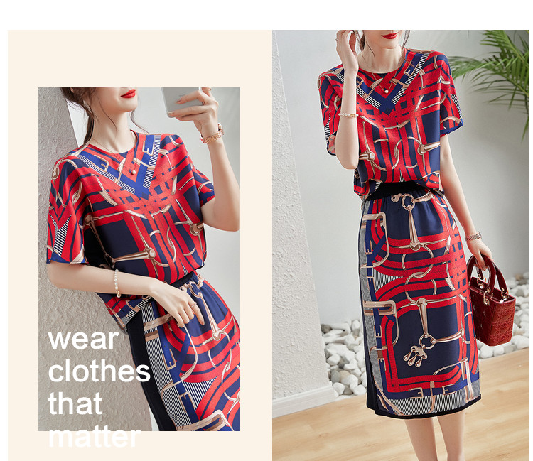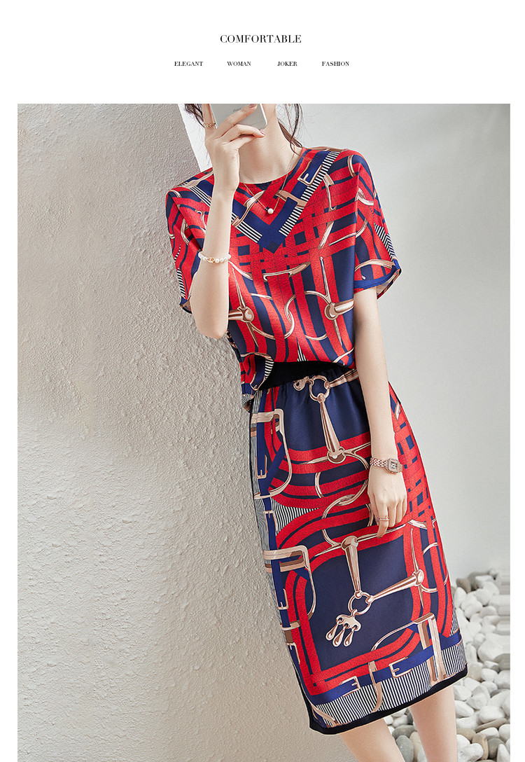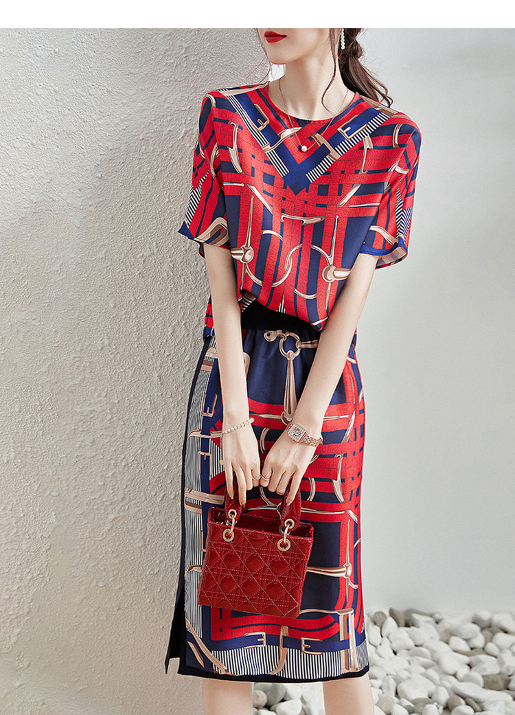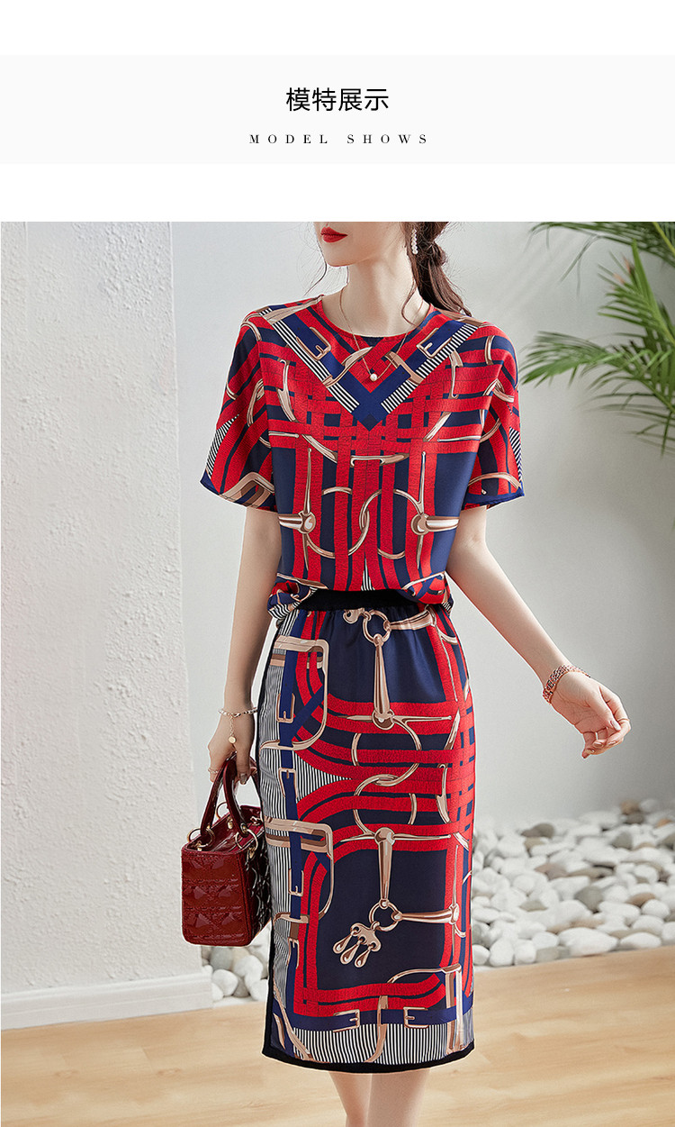 商品名称:【印花套装】夏季圆领宽松短袖上衣开衩半裙套装女时尚 405377
