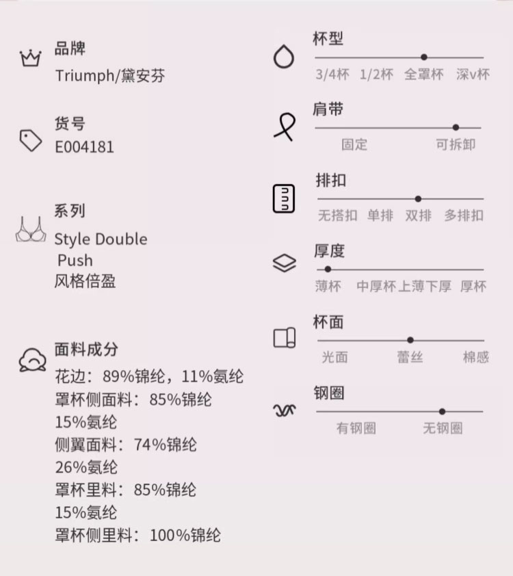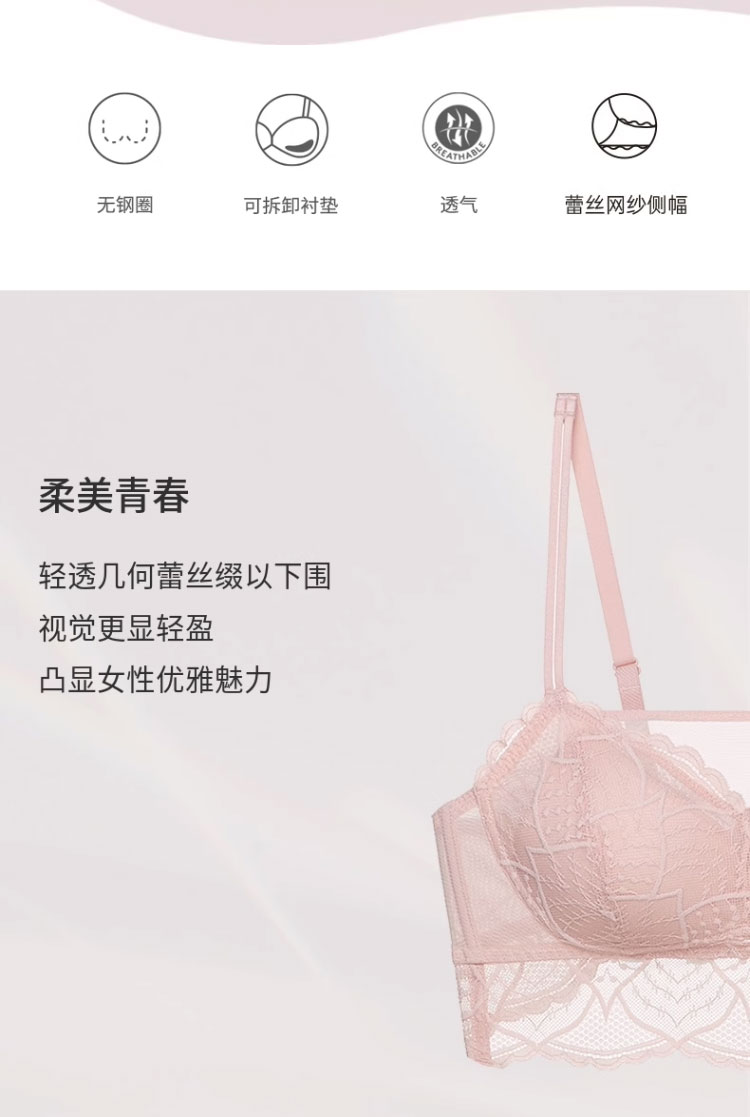 黛安芬风格倍盈蕾丝性感美背无钢圈无痕内衣女文胸E004181 679818