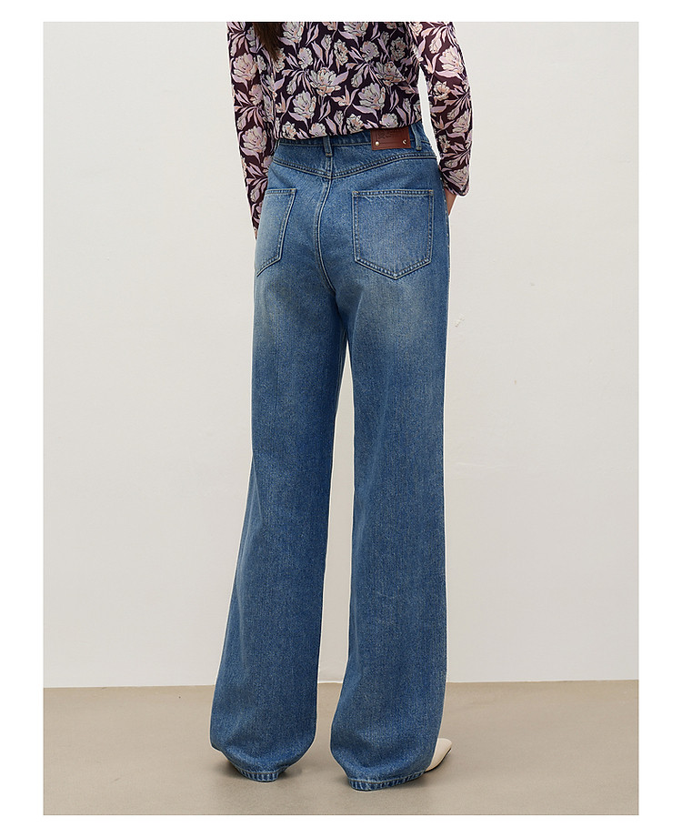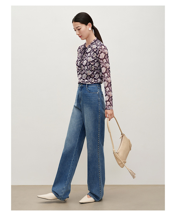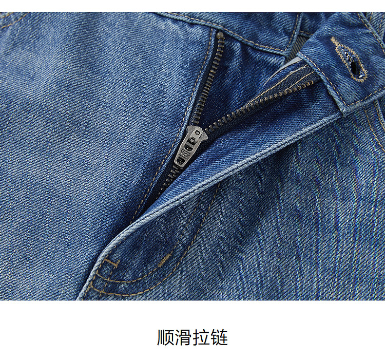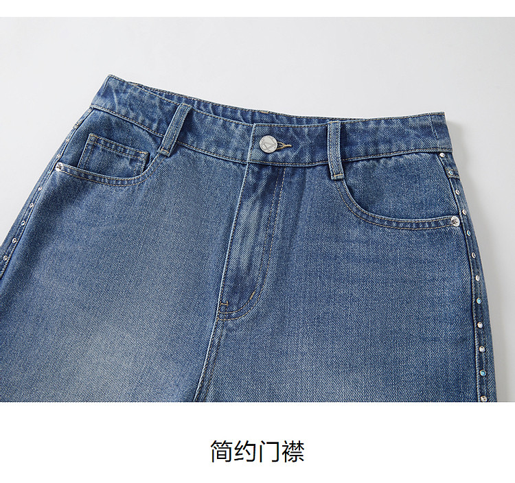 玖姿旗下安娜蔻系列时髦设计感侧边彩钻水洗直筒牛仔裤女秋季 512652