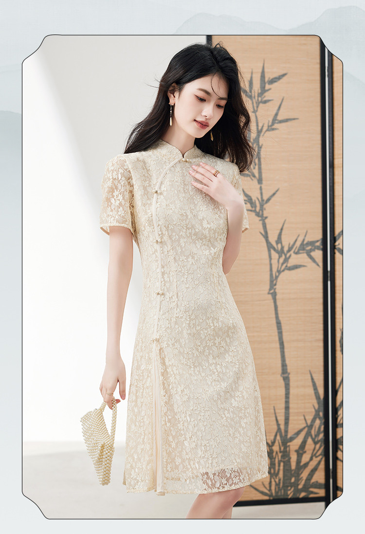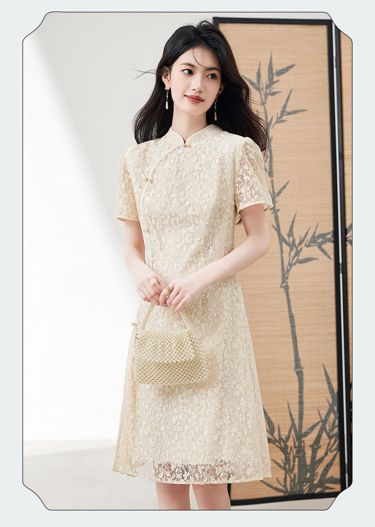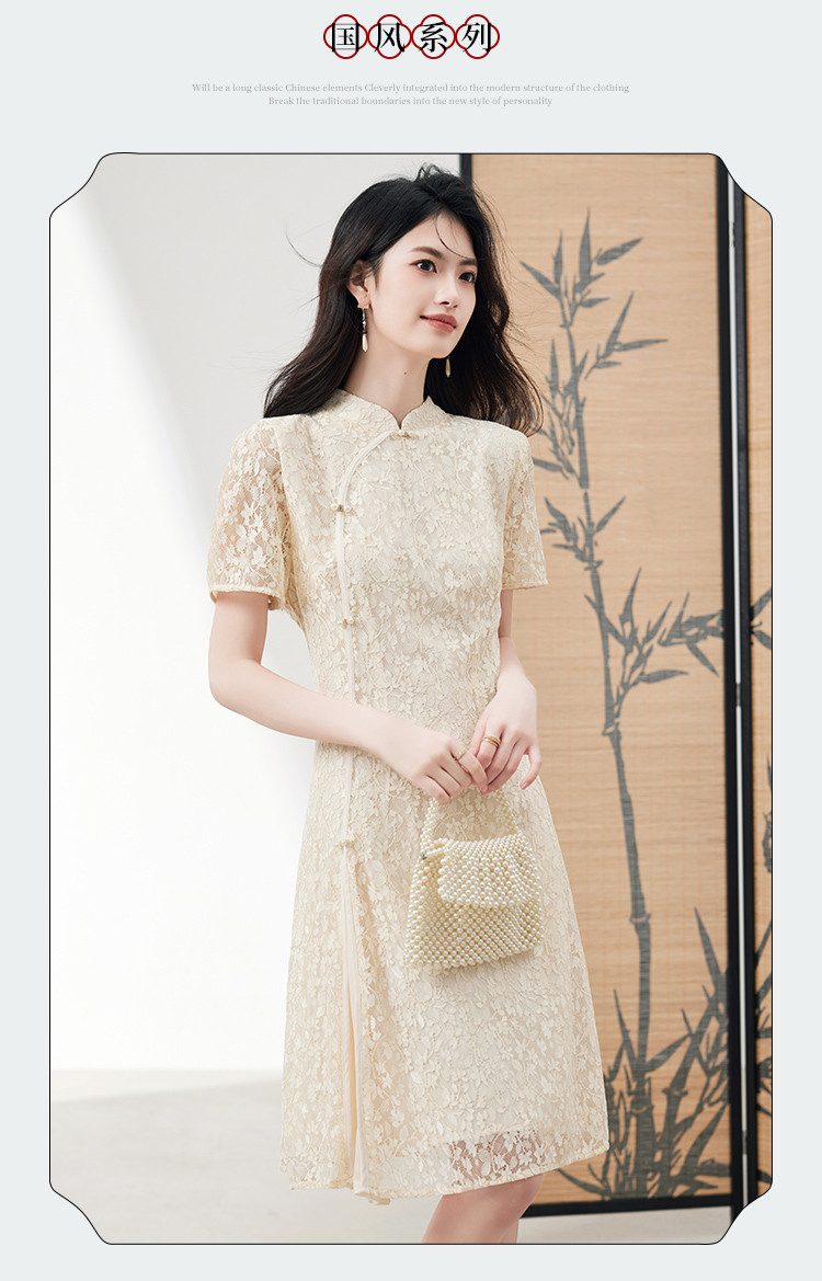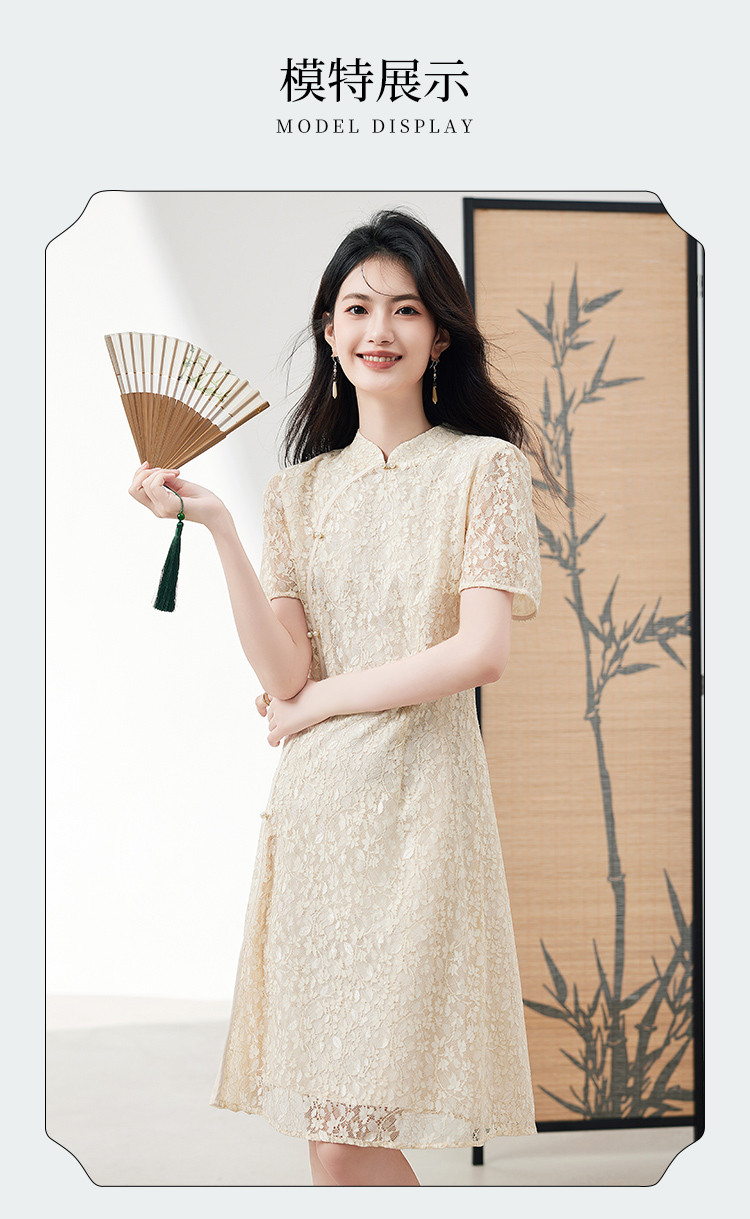 商品名称:连衣裙2025夏季新款改良旗袍短袖修身显瘦气质国风新中式裙子 300056