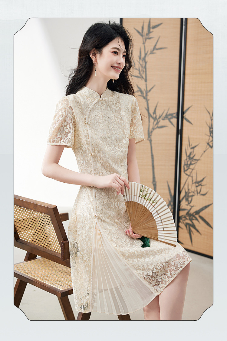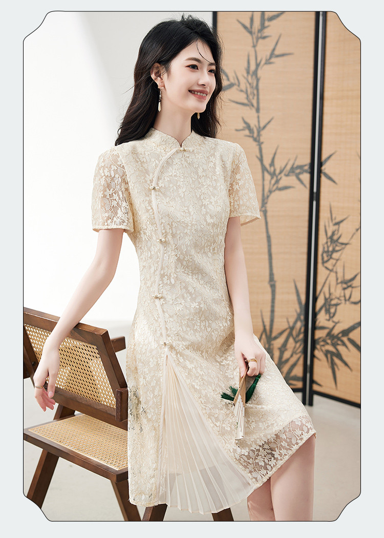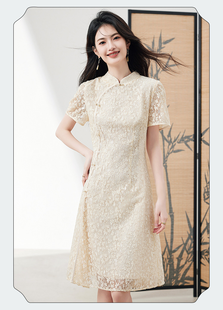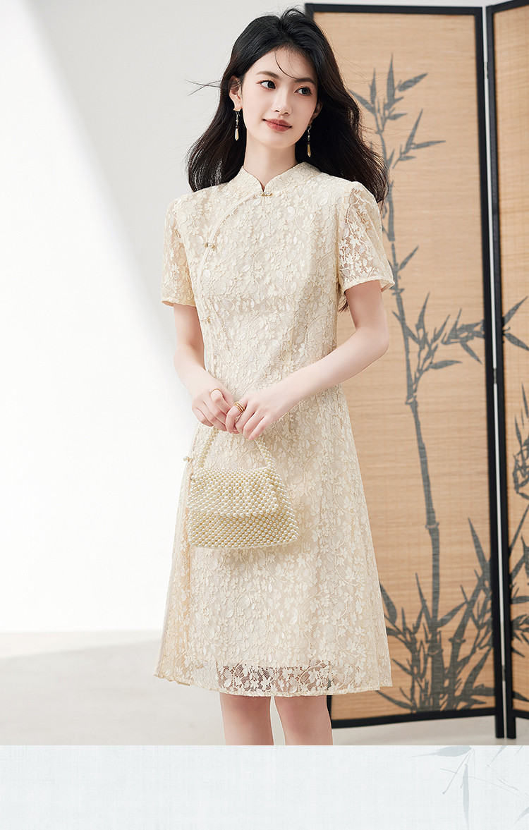 商品名称:连衣裙2025夏季新款改良旗袍短袖修身显瘦气质国风新中式裙子 300056