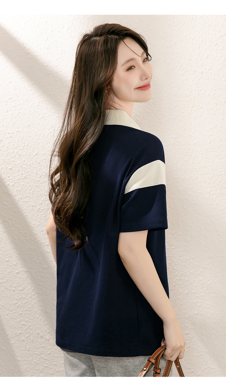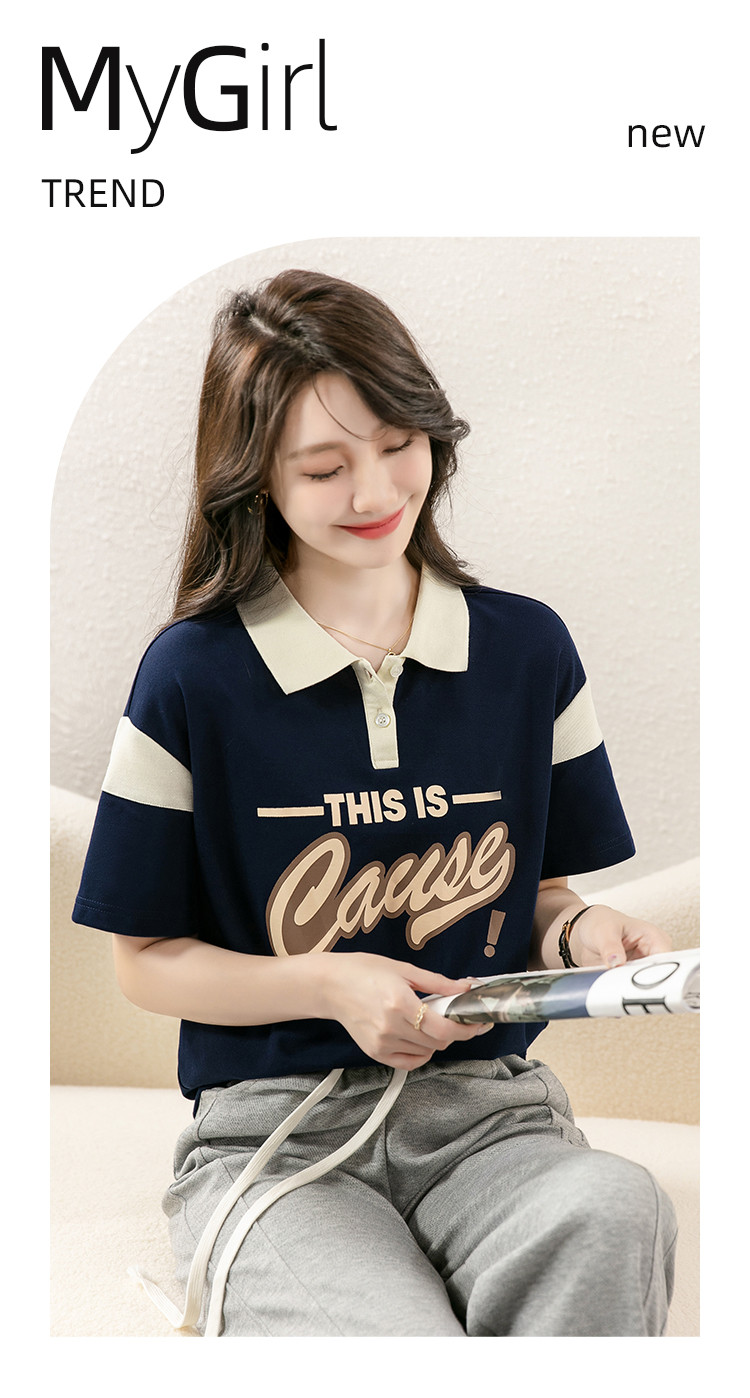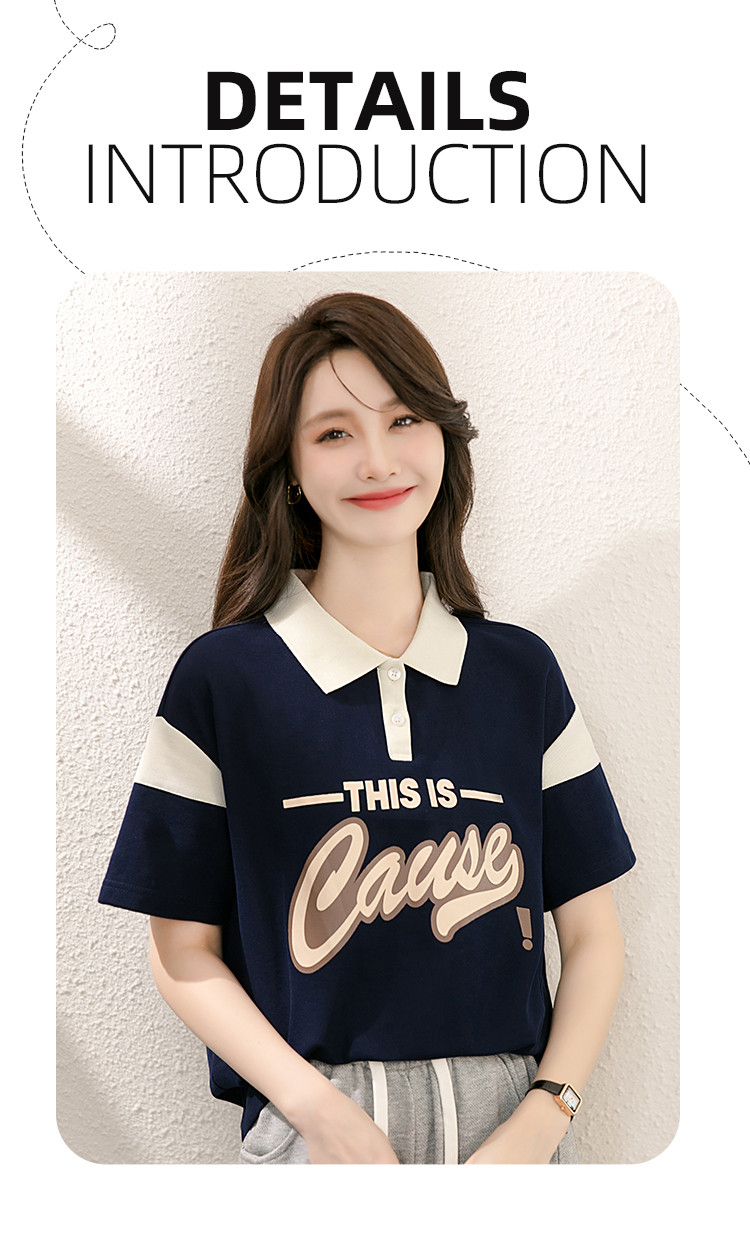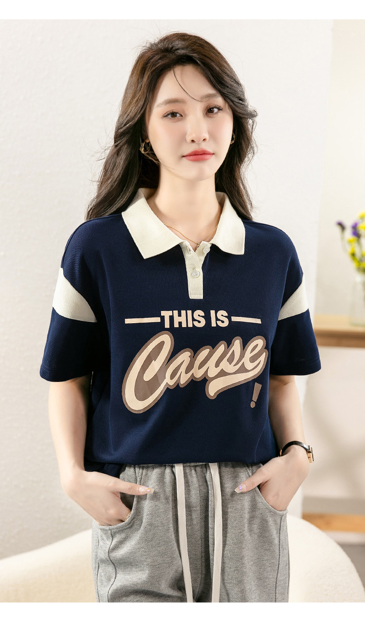 商品名称:设计感撞色POLO领上衣女印花时尚宽松休闲显瘦短袖T恤女 928088