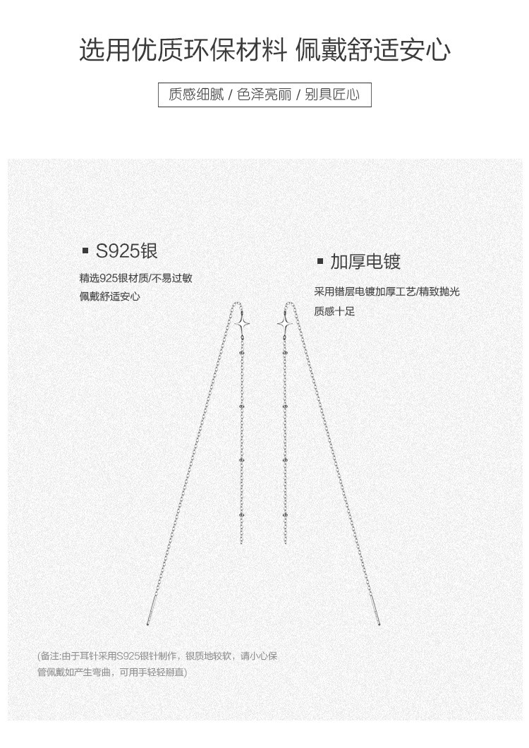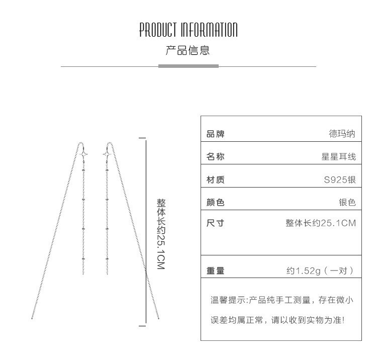 商品名称:【简约而不简单】星星耳线S925纯银简约精致耳链长款流苏耳线 615169