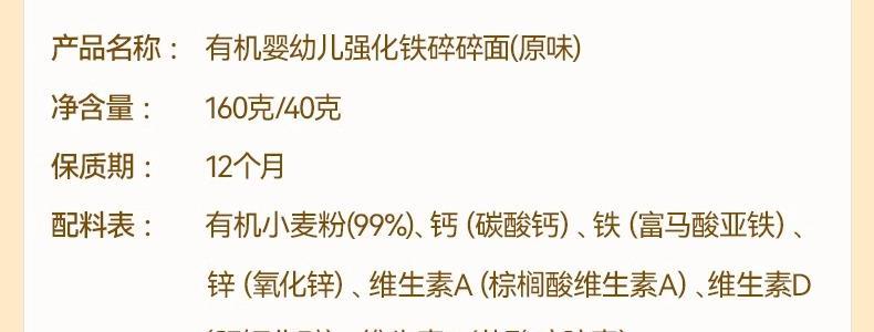 商品名称:秋田满满 有机婴幼儿强化铁碎碎面 (原味) 160g(包装随机)