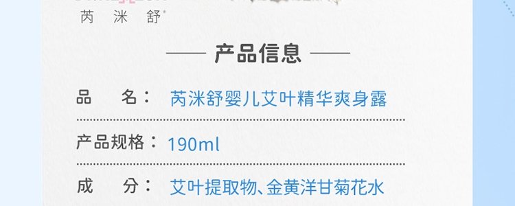 商品名称:芮洣舒(Dr.REMESH) 婴儿艾叶精华爽身露 190ml
