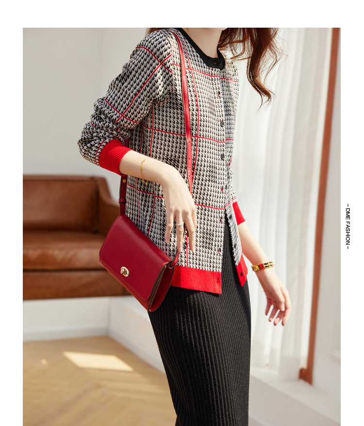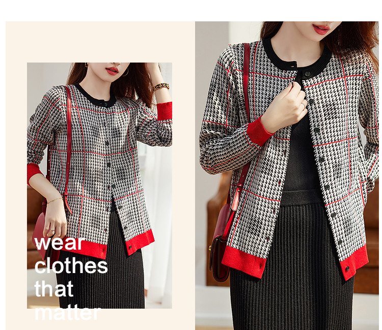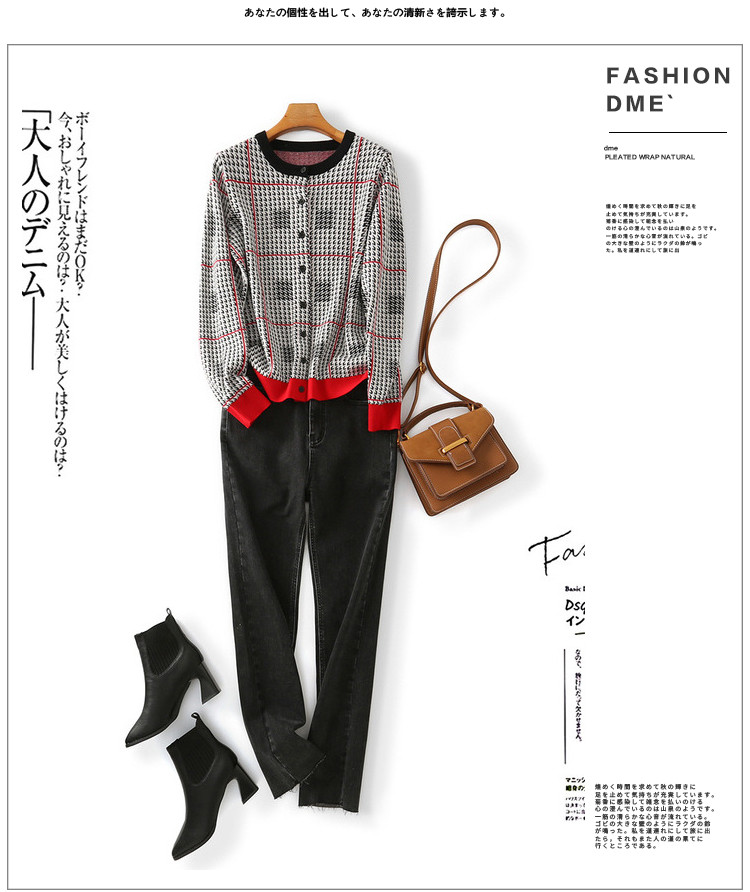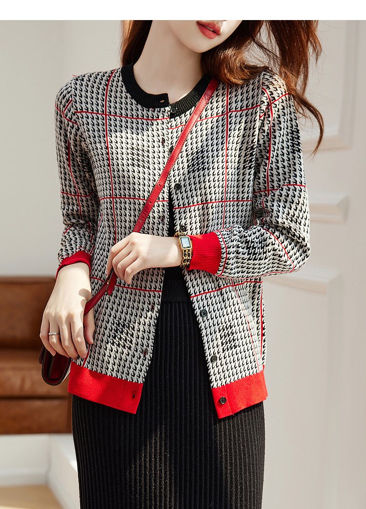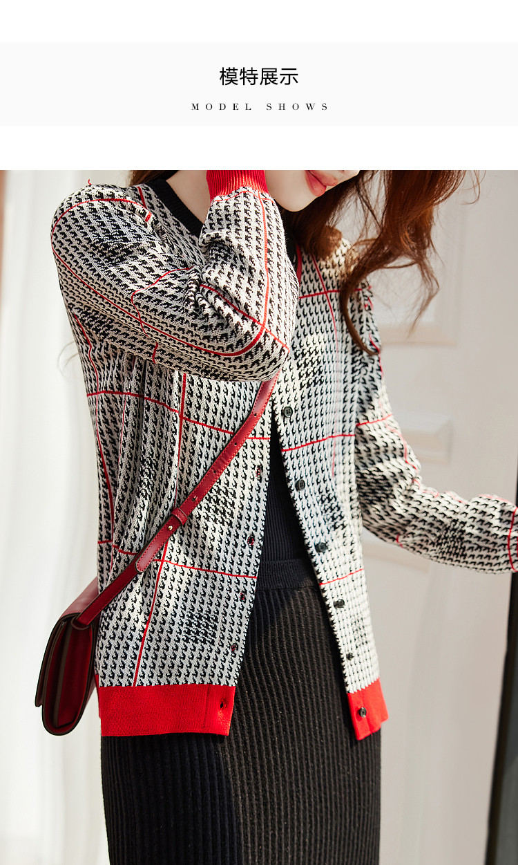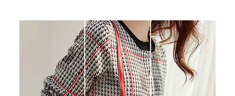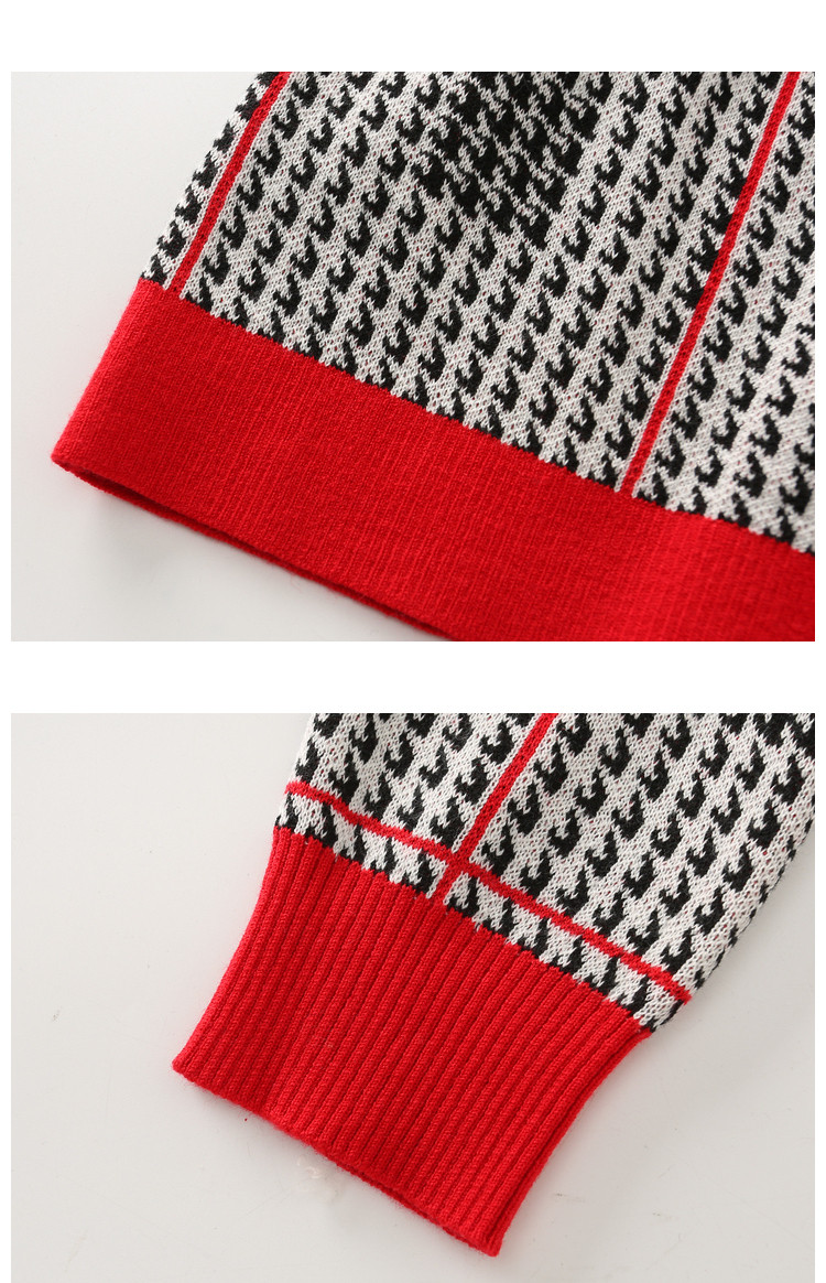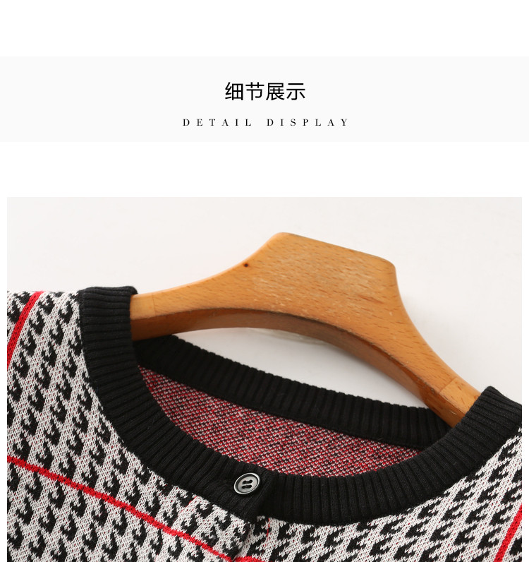 商品名称:【含绵羊毛千鸟格线衫】春秋圆领撞色罗纹长袖打底衫针织衫女上衣 394177