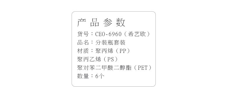 商品名称:希艺欧 旅行分装瓶6件套 颜色随机