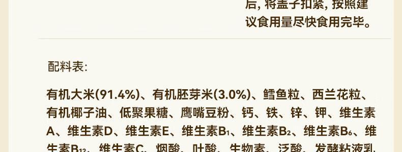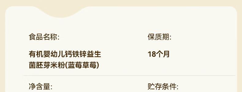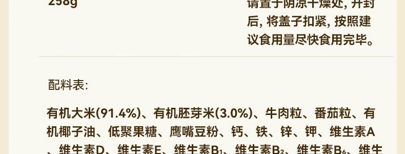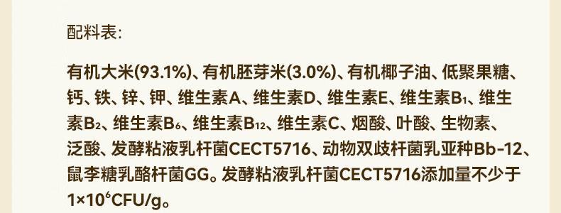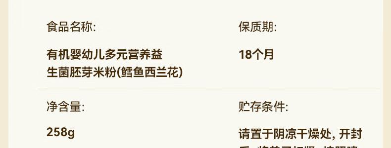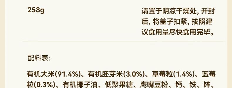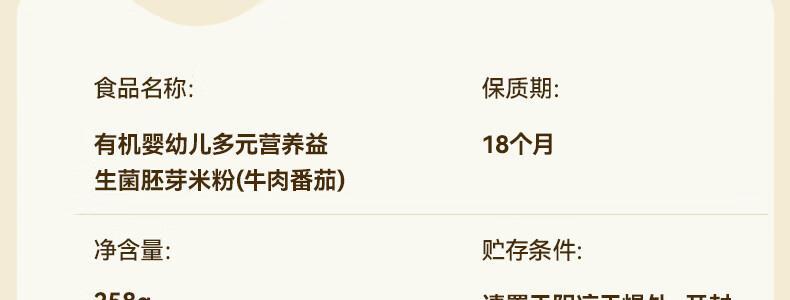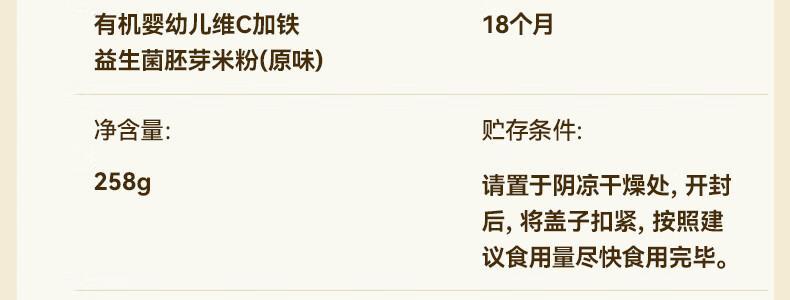 商品名称:秋田满满 有机婴幼儿维C加铁益生菌胚芽米粉 (原味) 258g